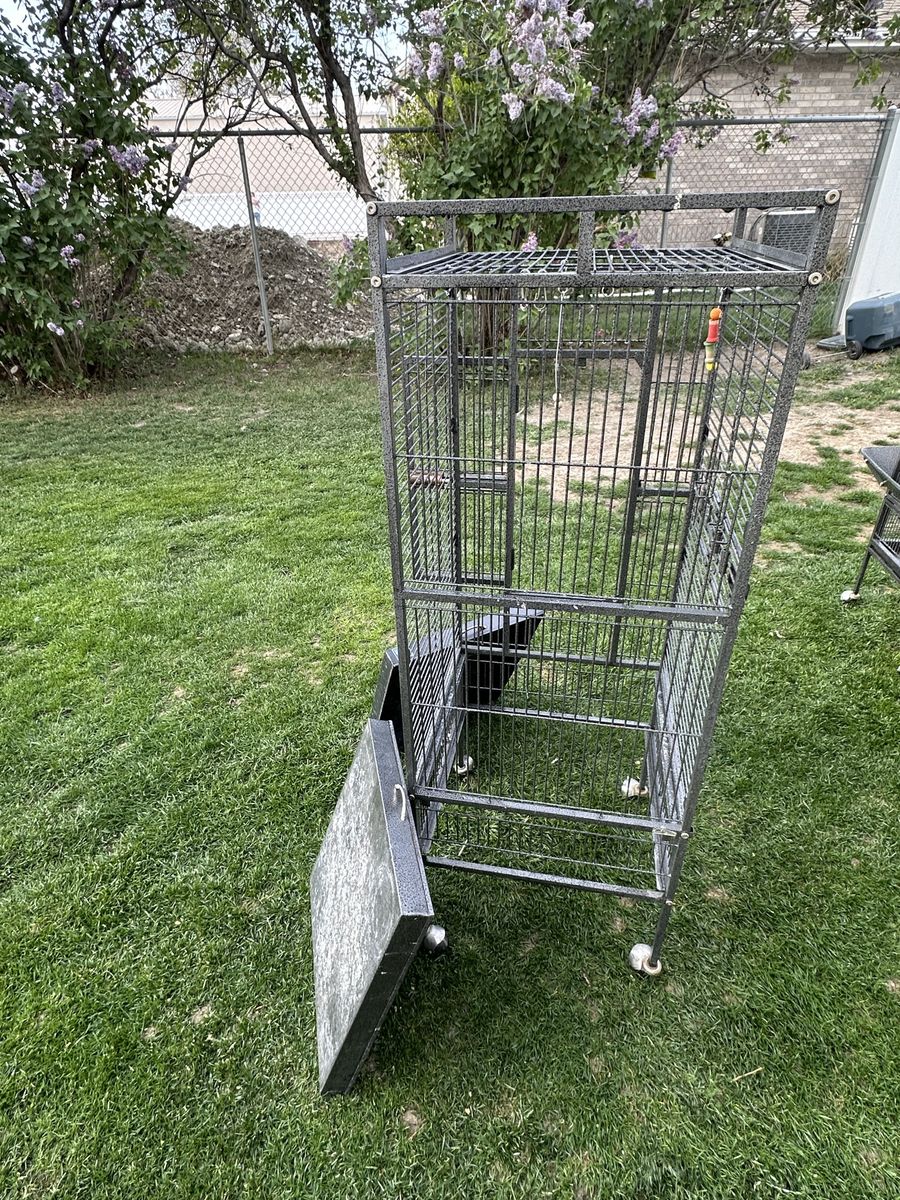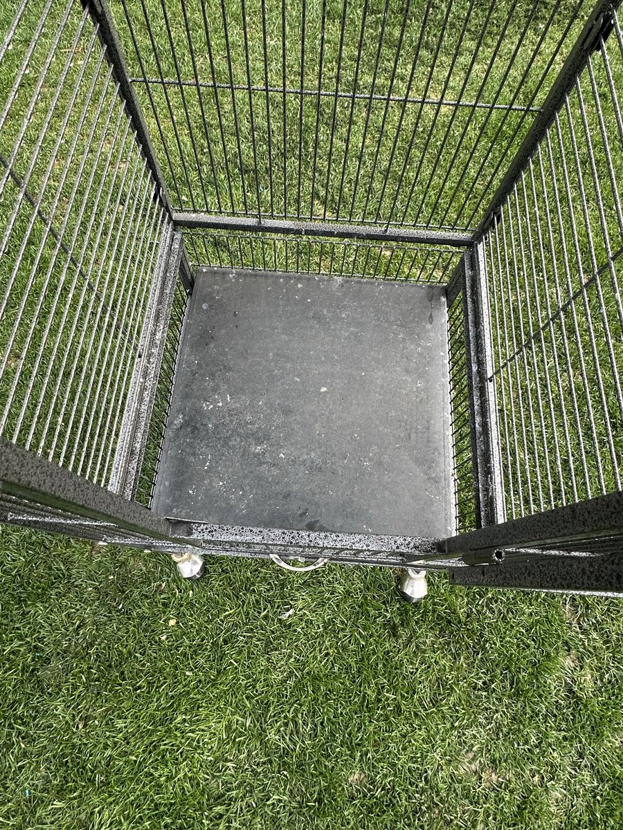 If advert is up it’s available Eager to sell make reasonable offer (I have other cages similar to this one. Check them out) Cages are washed off with hose. You’ll need to deep clean. Great for one small conure or cockatiel.