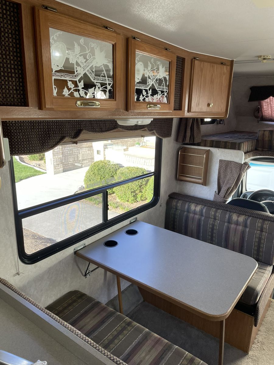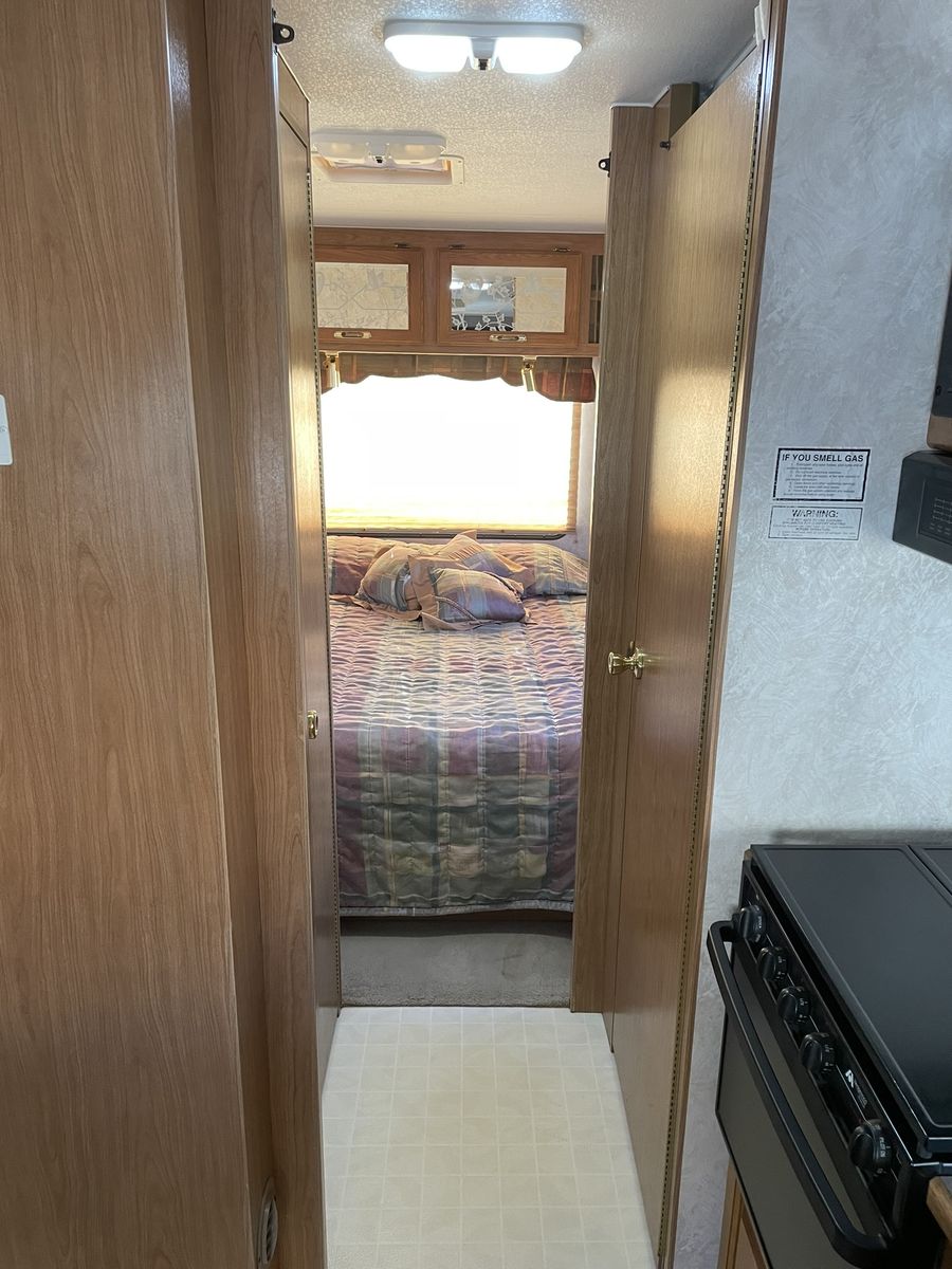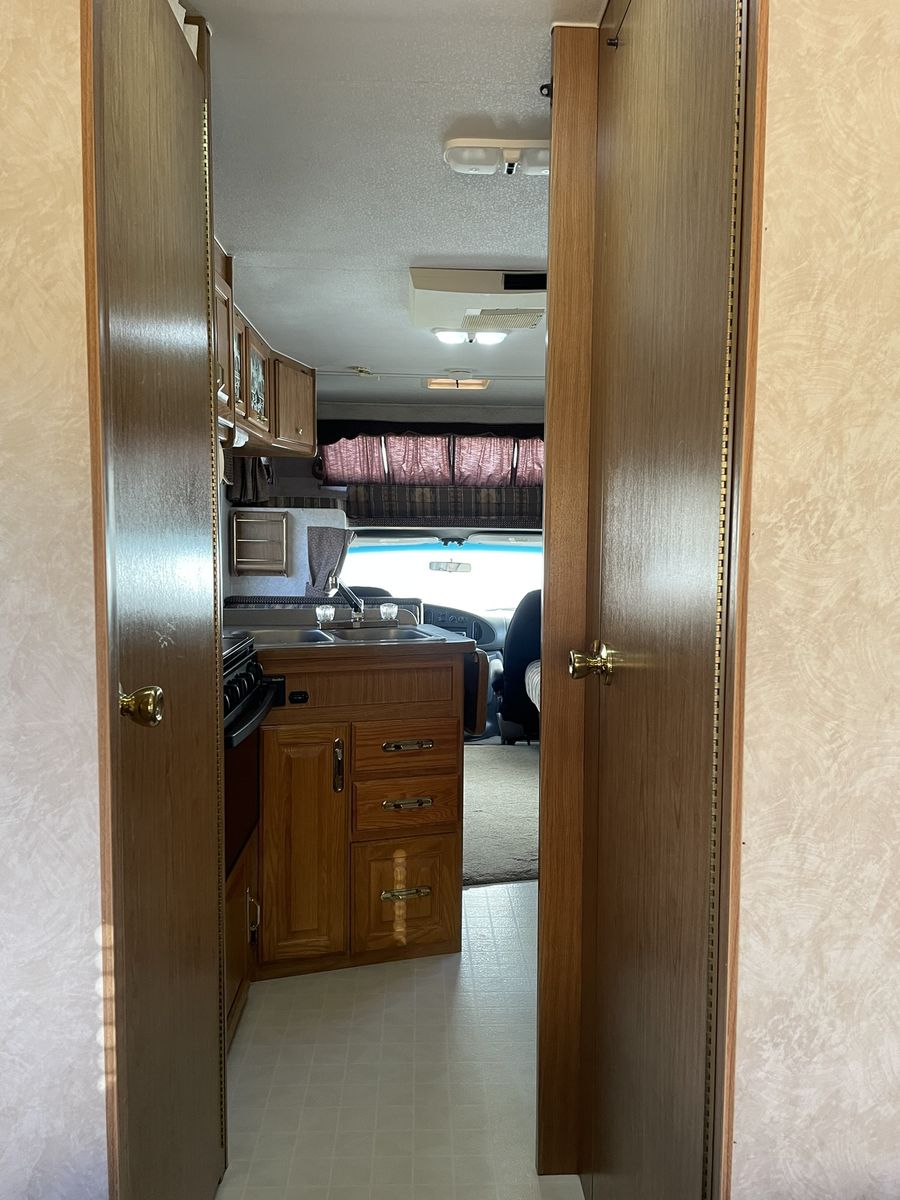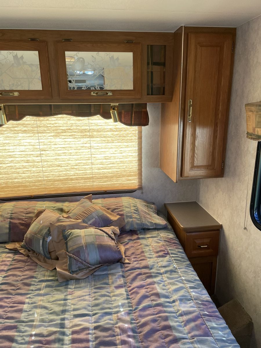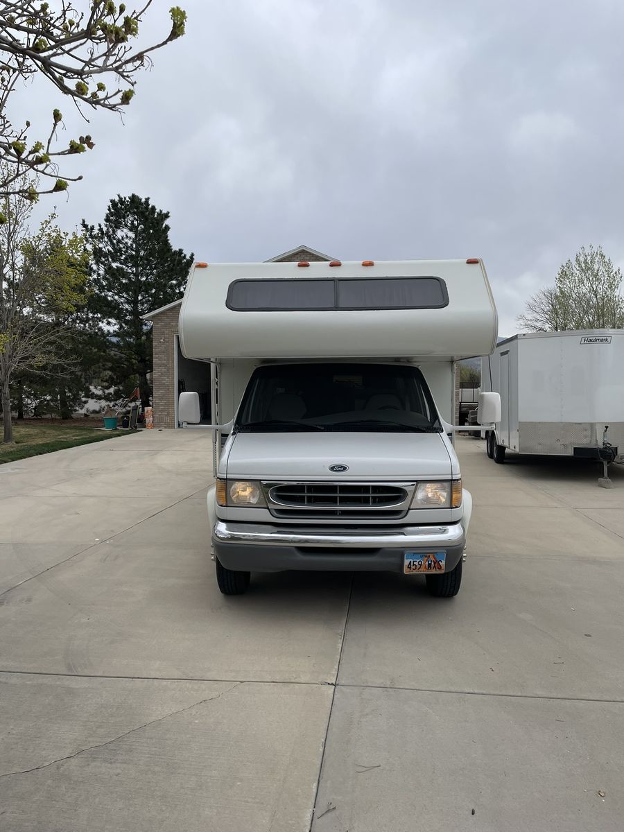 Must See! 28 ft. Class C motorhome built on a Ford E350 chassis with a V10 engine. Sleeps up to 8 people with a walk around queen size master bed, upper bunk, sofa sleeper and convertible dinette. Separate bathroom and shower areas. Plenty of storage with two closets, cupboards above the sofa and dinette as well as in the kitchen area. Outside storage includes a pass through compartment and several other compartments. Onboard generator, A/C, heater, 3 way refrigerator/freezer - all in good working condition. Very well taken care of and always stored indoors.