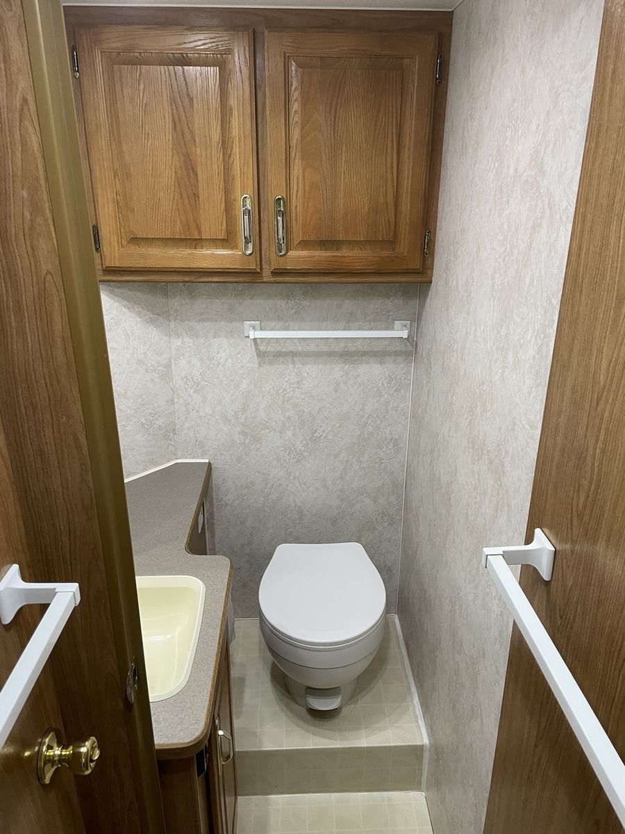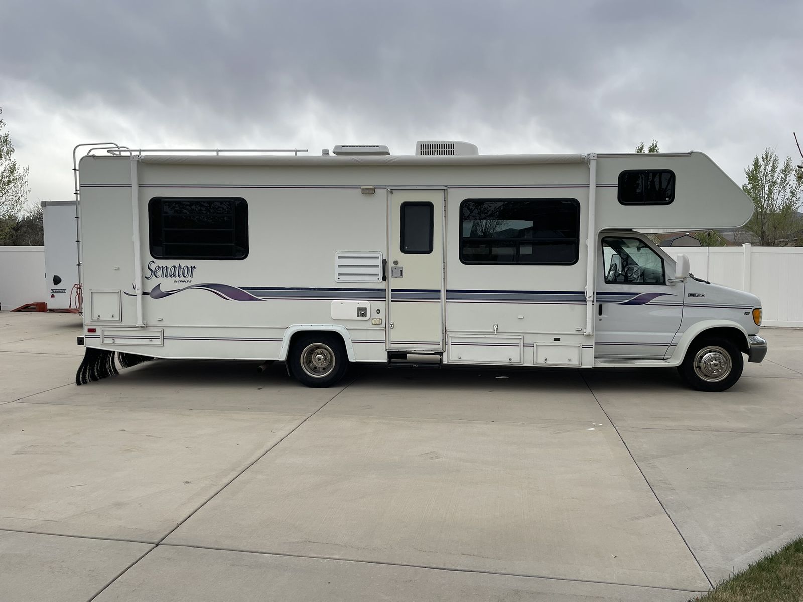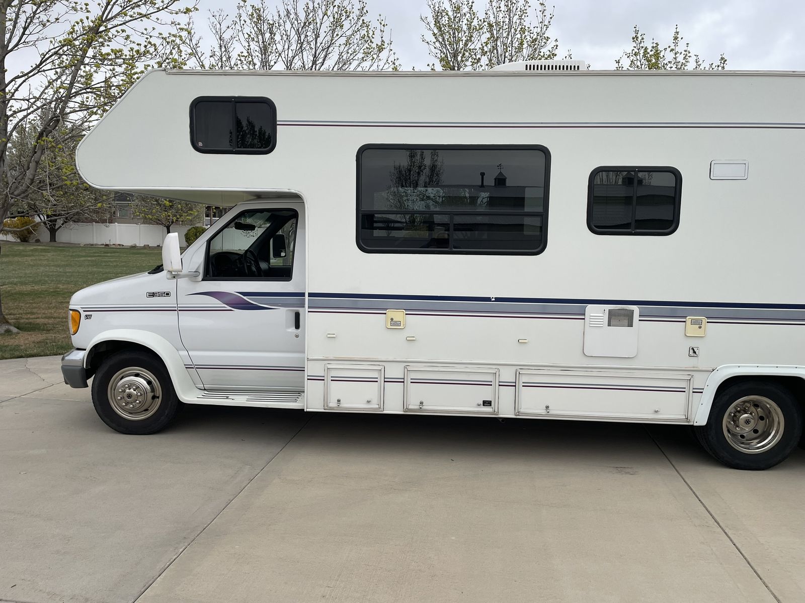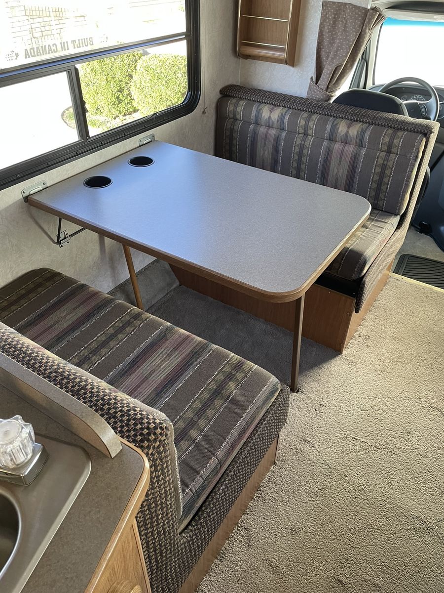 Must See! 28 ft. Class C motorhome built on a Ford E350 chassis with a V10 engine. Sleeps up to 8 people with a walk around queen size master bed, upper bunk, sofa sleeper and convertible dinette. Separate bathroom and shower areas. Plenty of storage with two closets, cupboards above the sofa and dinette as well as in the kitchen area. Outside storage includes a pass through compartment and several other compartments. Onboard generator, A/C, heater, 3 way refrigerator/freezer - all in good working condition. Very well taken care of and always stored indoors.