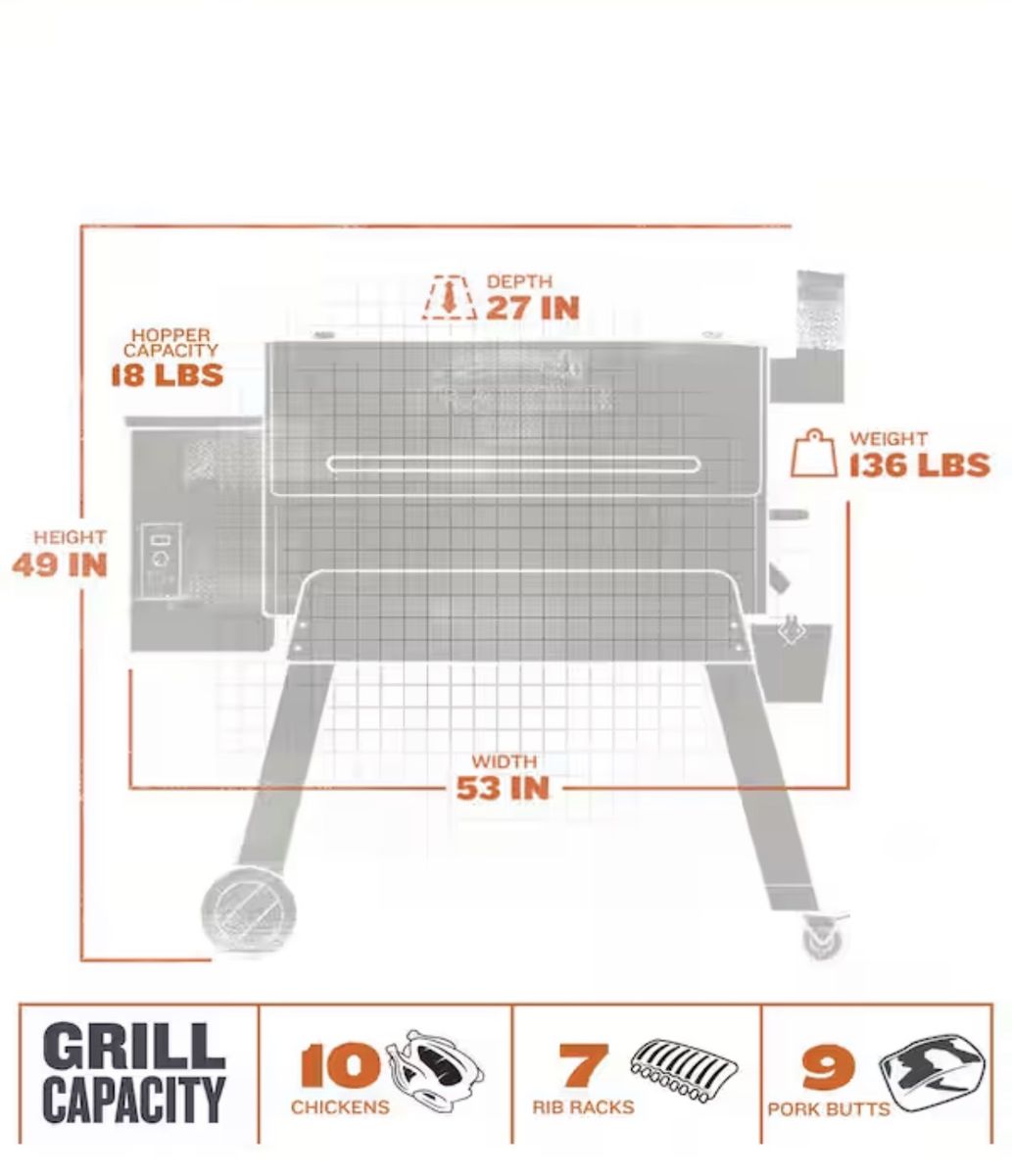 CashApp34-inch Pro Series wood pellet grill, offering 884 sq. in. of cooking space and 18 lb. hopper capacity for large-batch smoking and grilling. $375 or best offer.