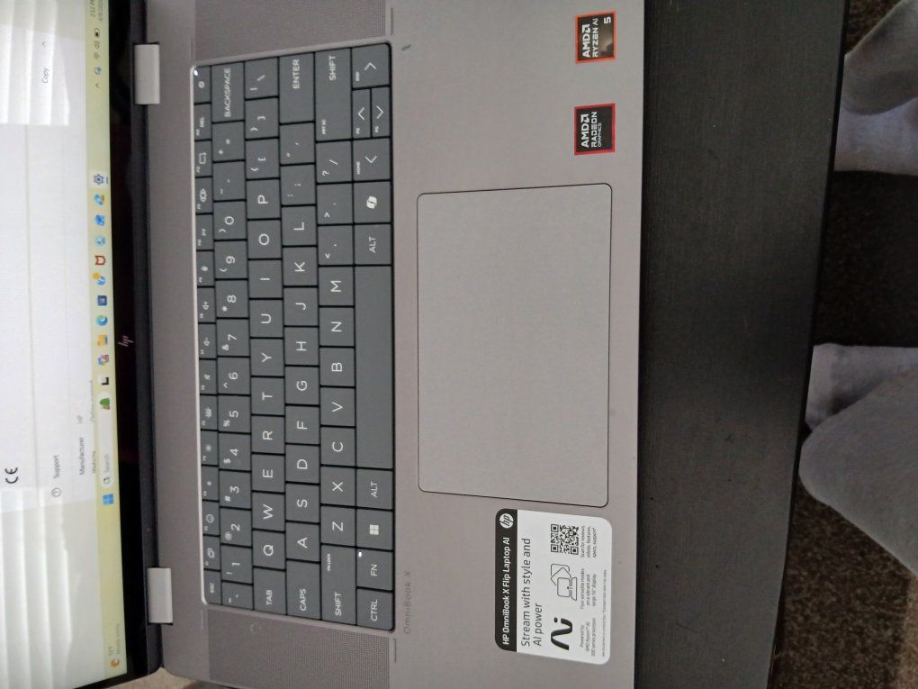 OmniBook X Flip Laptop 16-af0xxx. It's hard to say definitively if this image was generated or modified by AI. While the hardware specifications listed are internally consistent (matching an HP OmniBook series laptop), the software details are highly irregular. Specifically, the Windows version is listed as 25H2, and the installation date is 2/10/2026. As of early 2024, Windows 11 versions follow a yearly cycle (like 23H2), making a "25H2" version from the year 2026 futuristic and not currently in existence. Device Specifications Processor: AMD Ryzen AI 5 340 w/ Radeon 840M (2.00 GHz) Installed RAM: 16.0 GB (15.3 GB usable) System Type: 64-bit operating system, x64-based processor Pen and Touch: Support with 10 touch points Windows Specifications Edition: Windows 11 Pro Version: 25H2 Installed on: 2/10/2026 OS Build: 26200.7840 BRAND NEW IN THE BOX