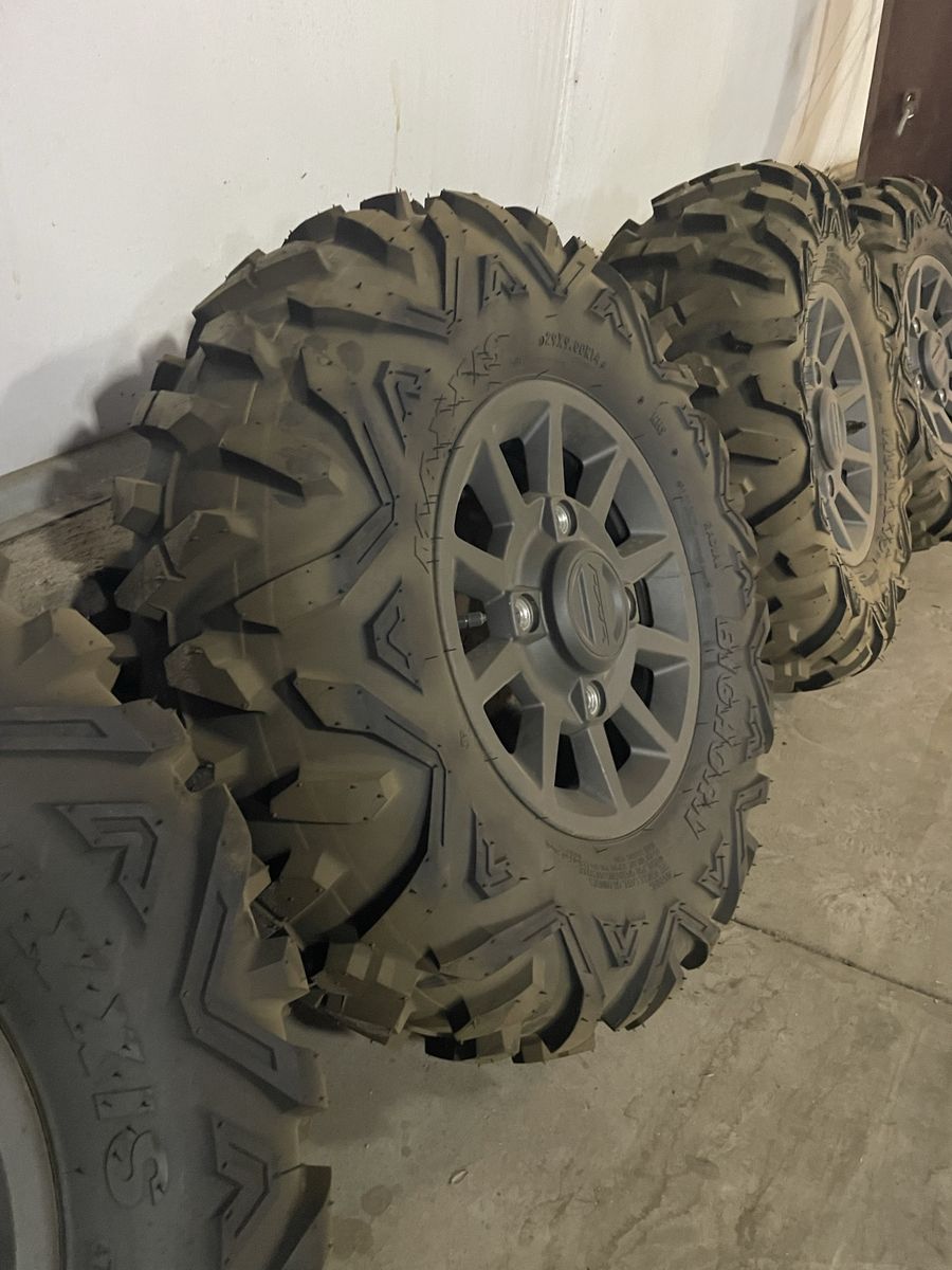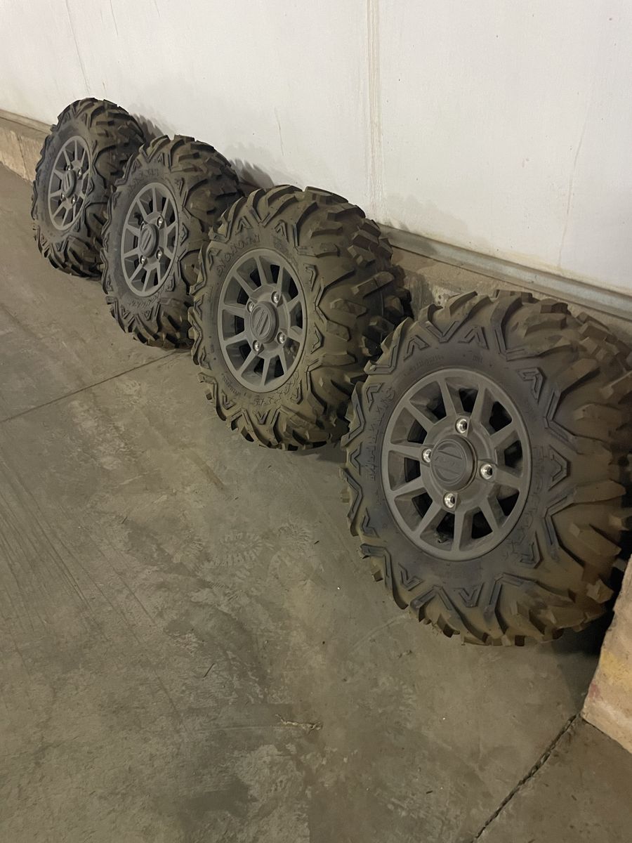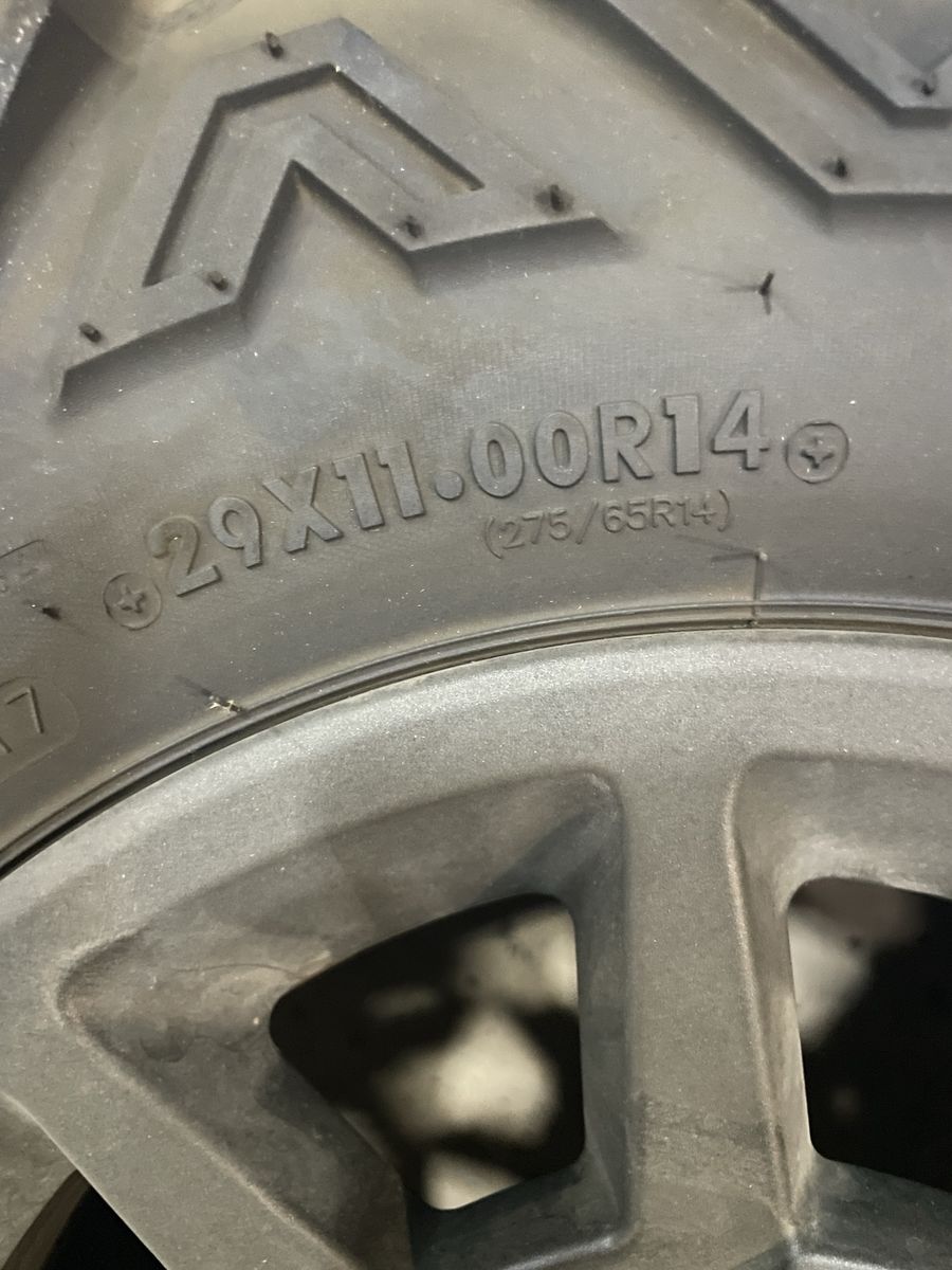 29-9-14 fronts and 29-11-14 rears off Razer 1000 Turbo! Stock Maxxis Bighorn’s with maybe 10 miles! Excellent tires and wheels! $600.00