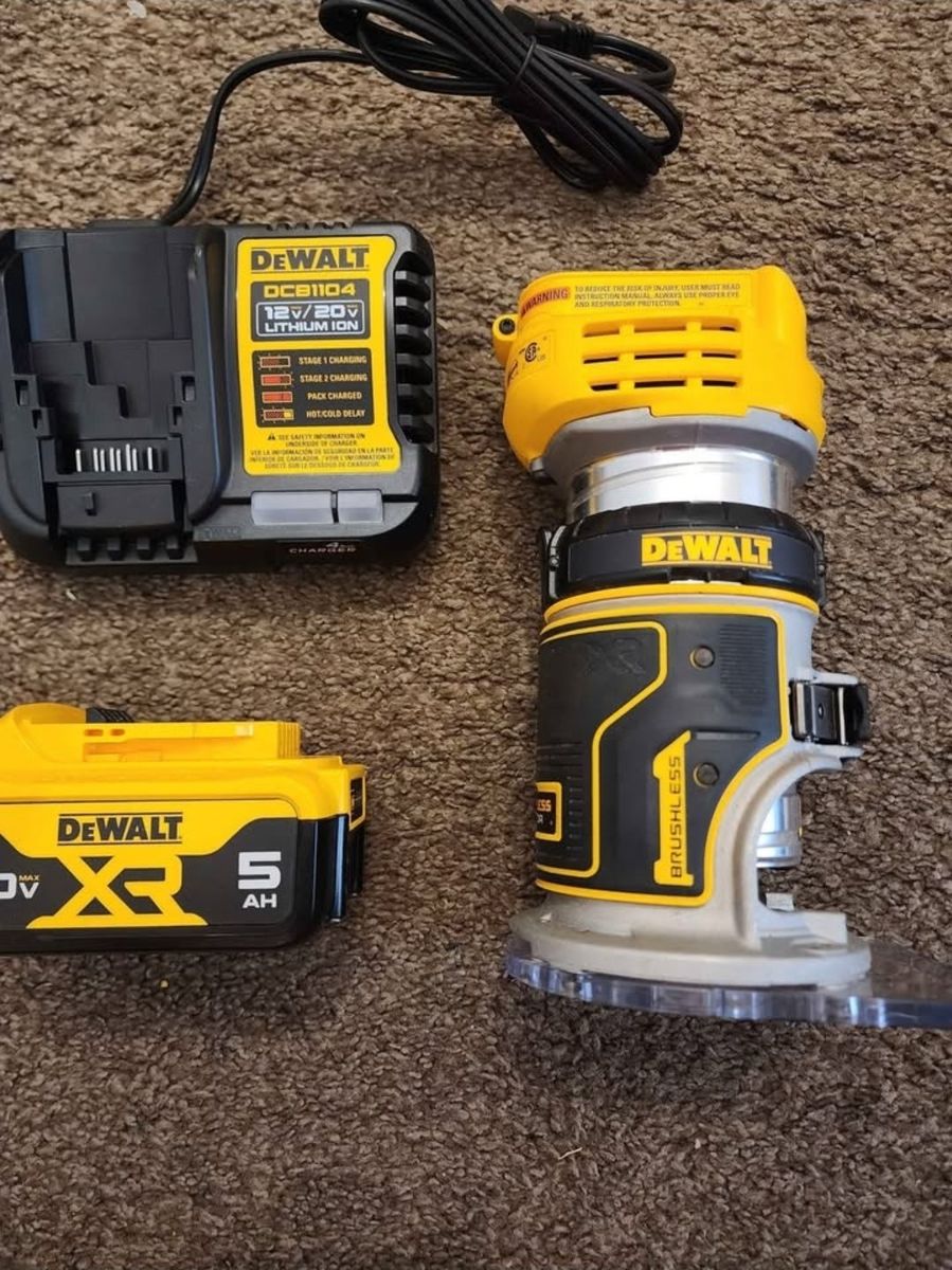 ZelleNew Dewalt 20V MAX XR Cordless, Brushless Compact Fixed Base Router Kit. Comes with 5AH 20V Battery and charger. Model Number DCW600P1.