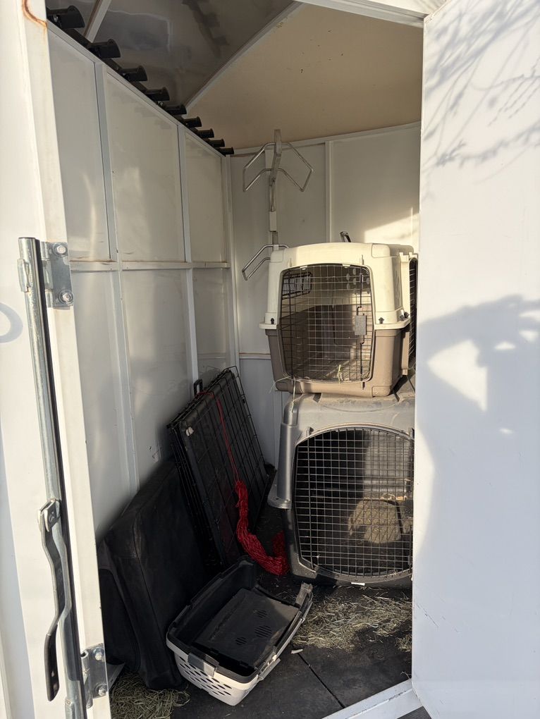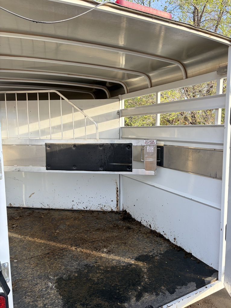 The tack wall is also Swingaway, making the trail into a large cargo hauler or open stock trailer. Inside height is 7’ with inside width 6’6”.