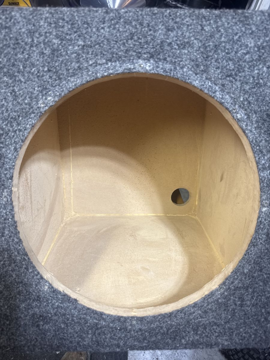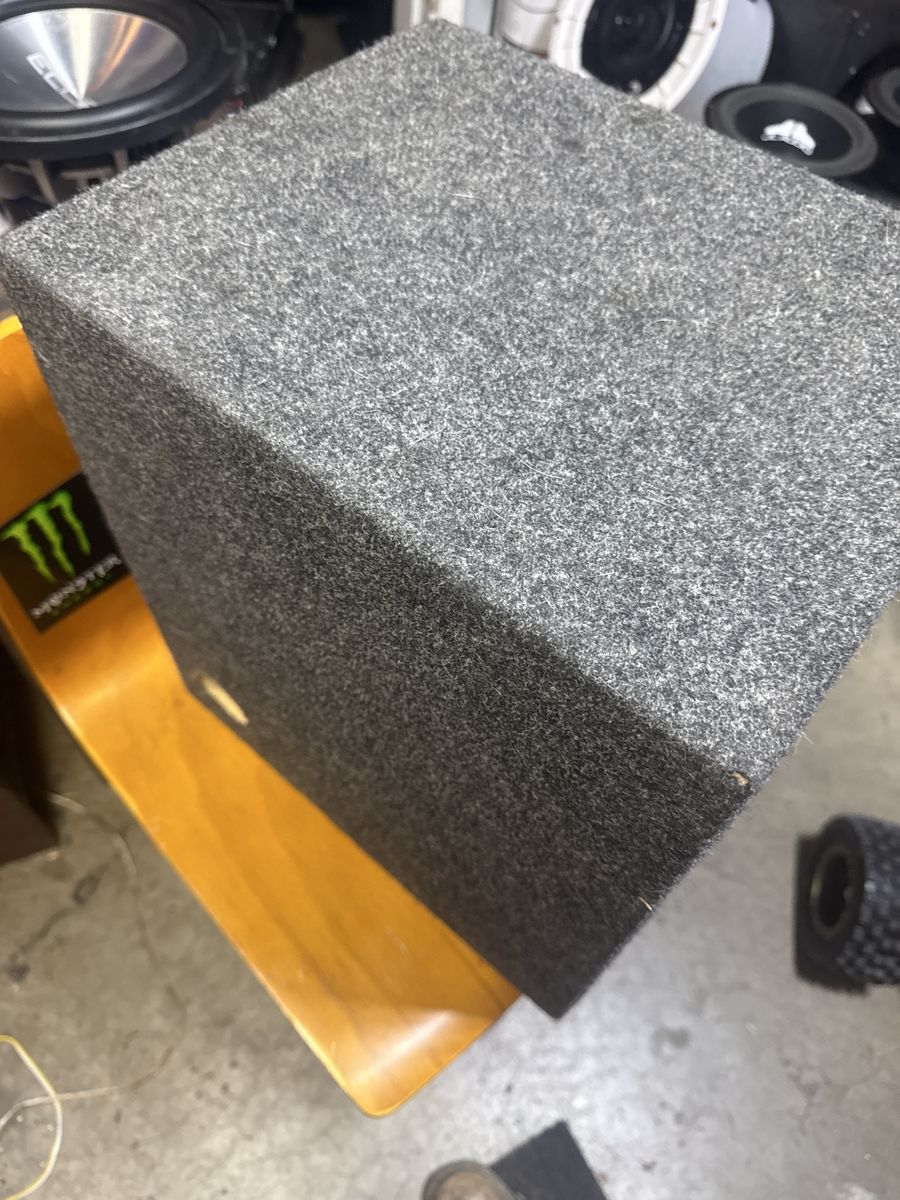 ApplePaySingle 12” subwoofer box. 14”W 15” tall 11”top depth 14” bottom depth 3/4” MDF built. Missing terminal cup Asking$15