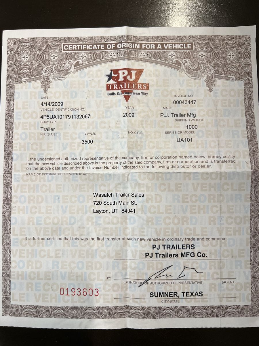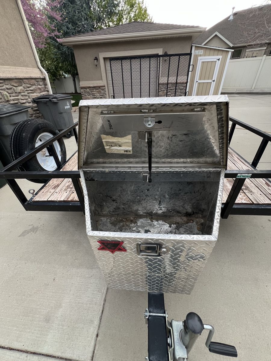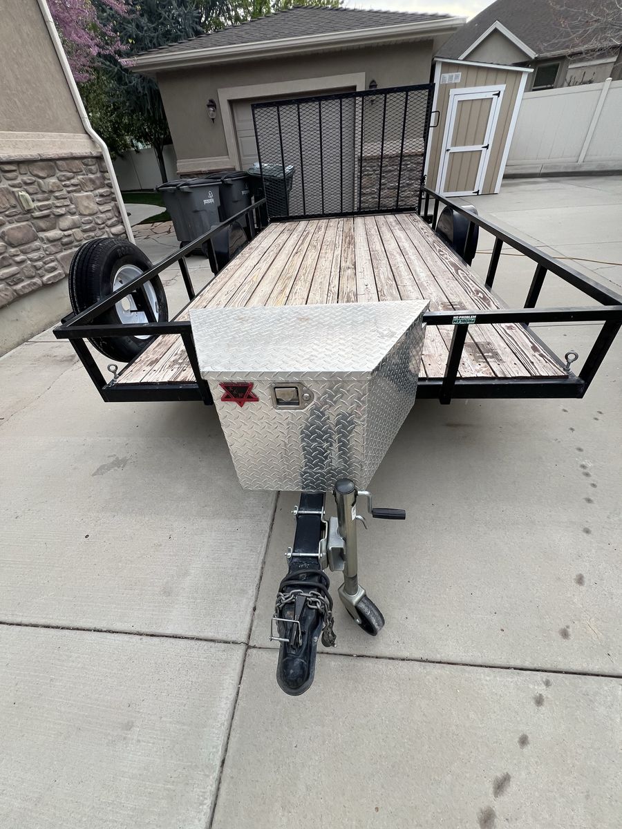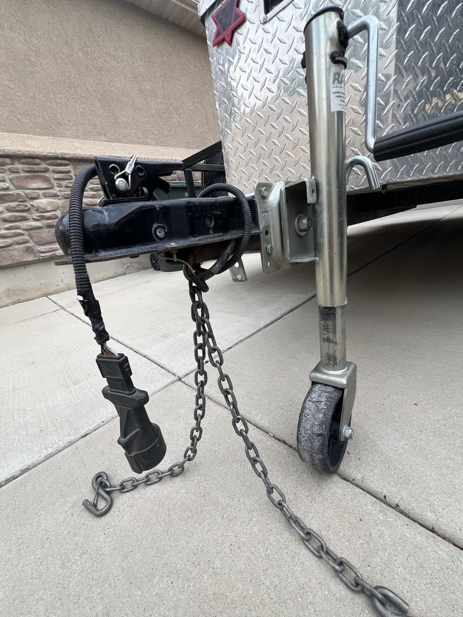 Purchased new in 2009, single axle 3,500 GVWR. Tires replaced (including spare) less than 2 years ago and wheel bearings were serviced. Wheel for tongue, safety chains, 4 flat or round plug and all the lights are operational. Stainless steel tongue storage box.