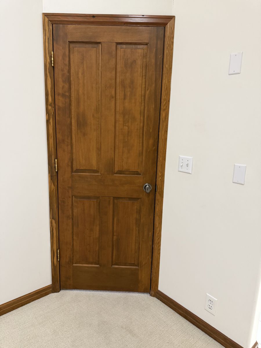 Solid fir 4 panel doors in jambs ready to install. 11 doors total.