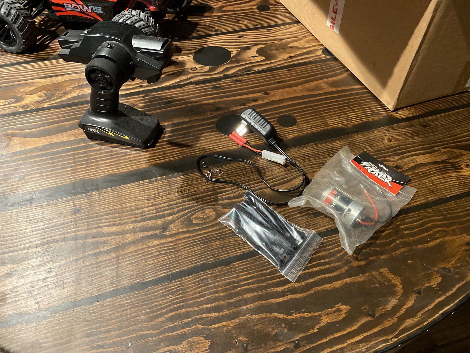comes with a spare brand new 550 motor and some spare lower control arms.