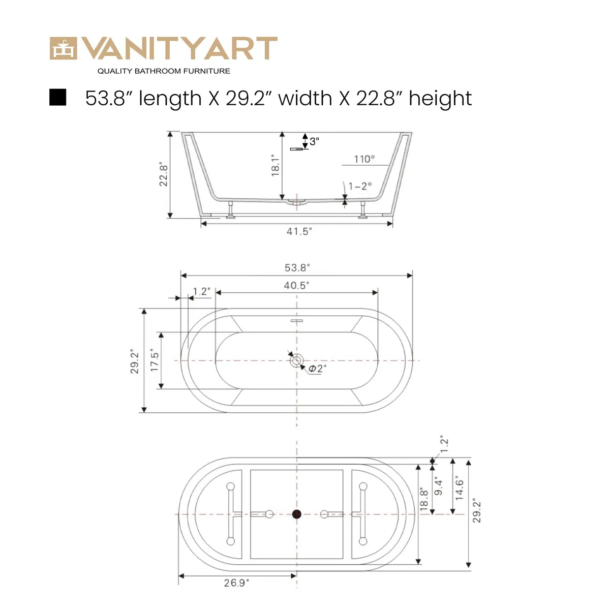 VenmoBrand new 54” x 29” freestanding acrylic soaking bathtub from Vanity Art.