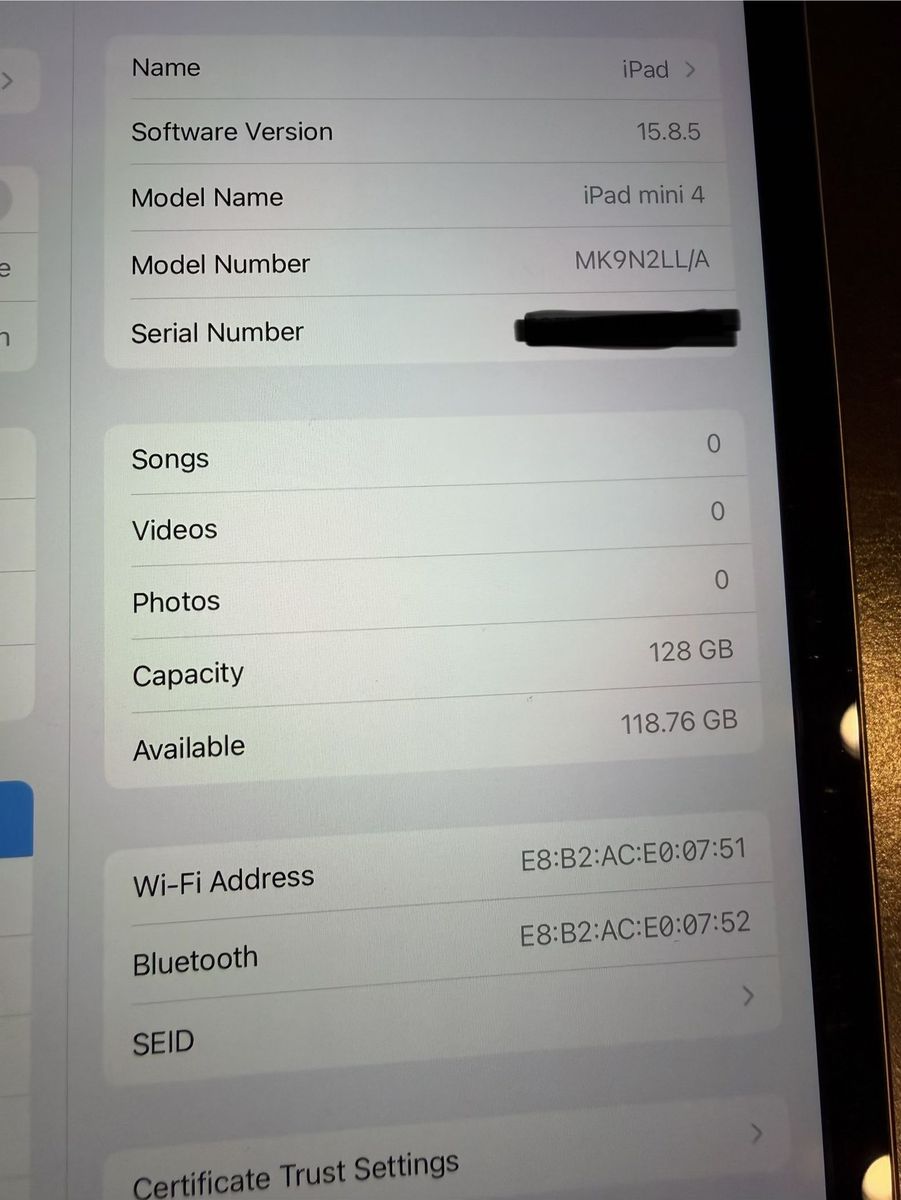 ApplePayiPad Mini 4 128 GB - Reset and ready for a new owner. This was my daughters for a few years, but we got her a phone now.