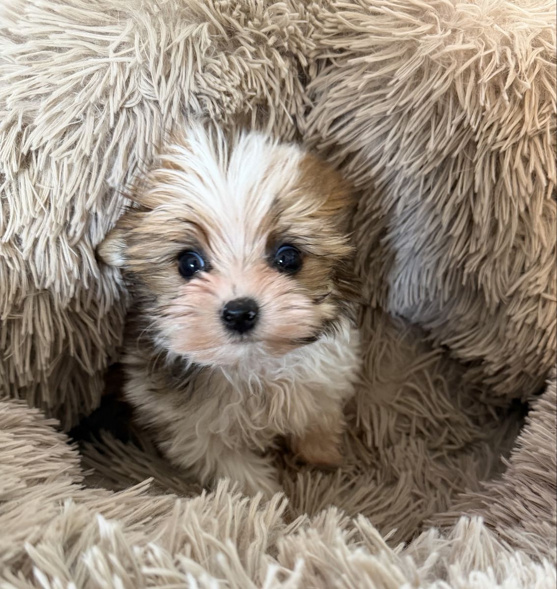 VenmoThis Sweet cuddly girl is 3/4 Yorkie and 1/4 Maltese. She is 10 weeks old hypoallergenic and non shedding she has her first shot dewormed no dewclaws. Free delivery part way. She will be 5 to 6 lbs.