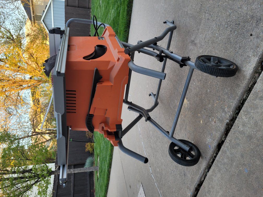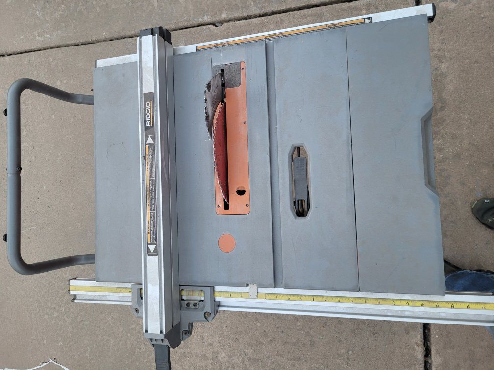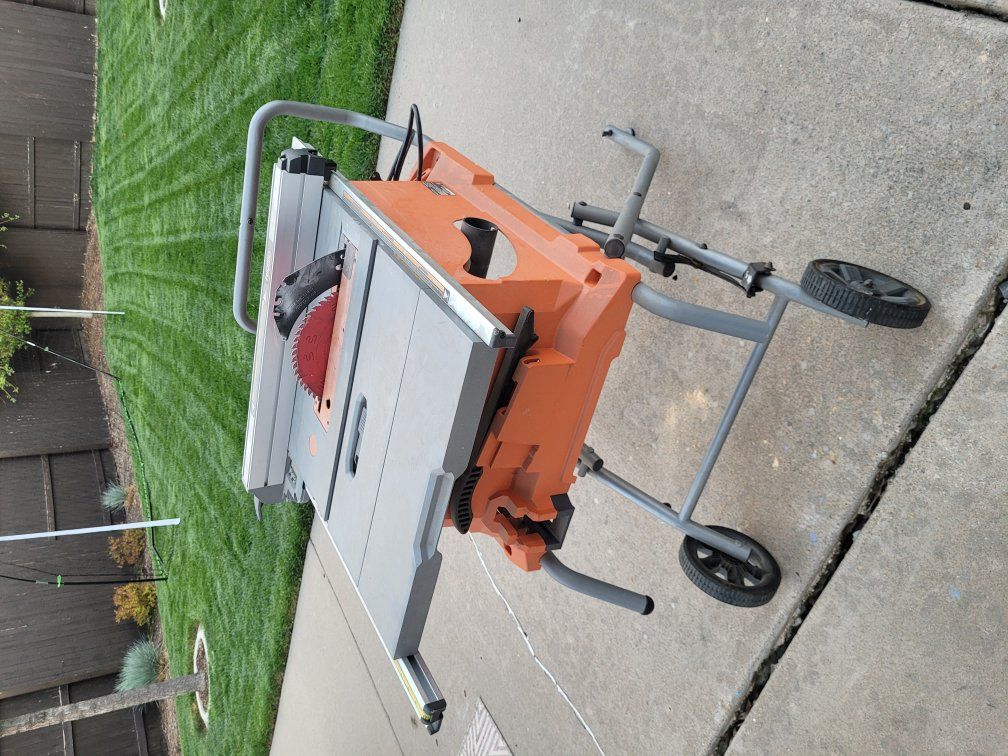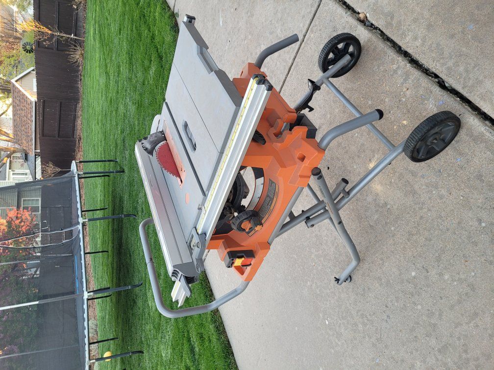GooglePayNearly new Ridgid portable table saw. Corded. 15 Amp. 10 inch blade. Pro jobsite with stand. Retails for $549 w/tax new at Home Depot. Always stored in a garage. only used a few times to make a few dinner tables and a cabinet. All original pieces included, including guide.
