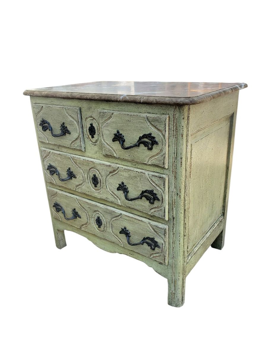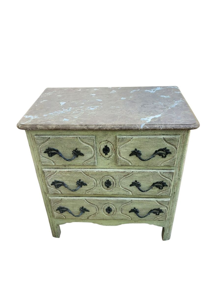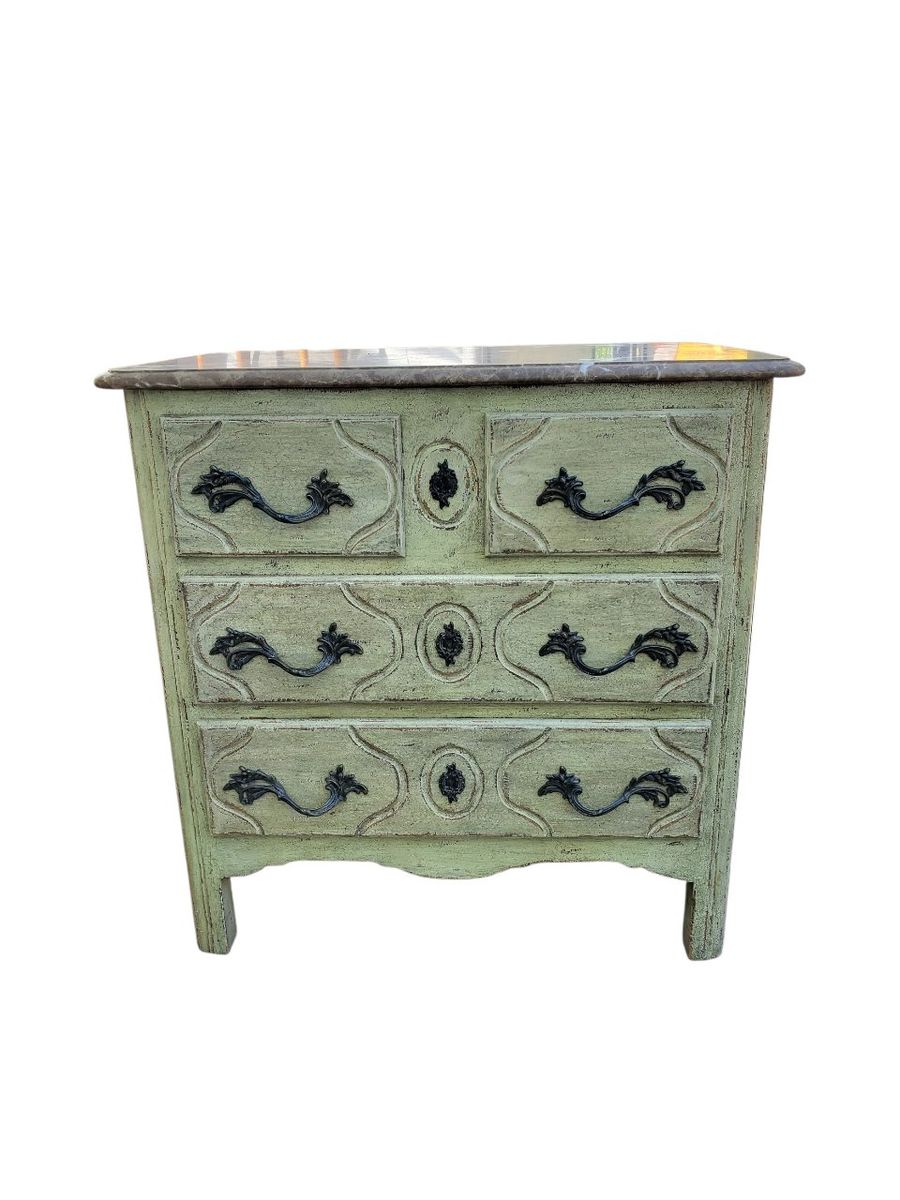 pale sea foam mint green | commode | chest of drawers | nightstand | marble top | high end | brass hardware | key holes | 4 drawers | Los Angeles | wood | Marseille | nightstand | end table | console table