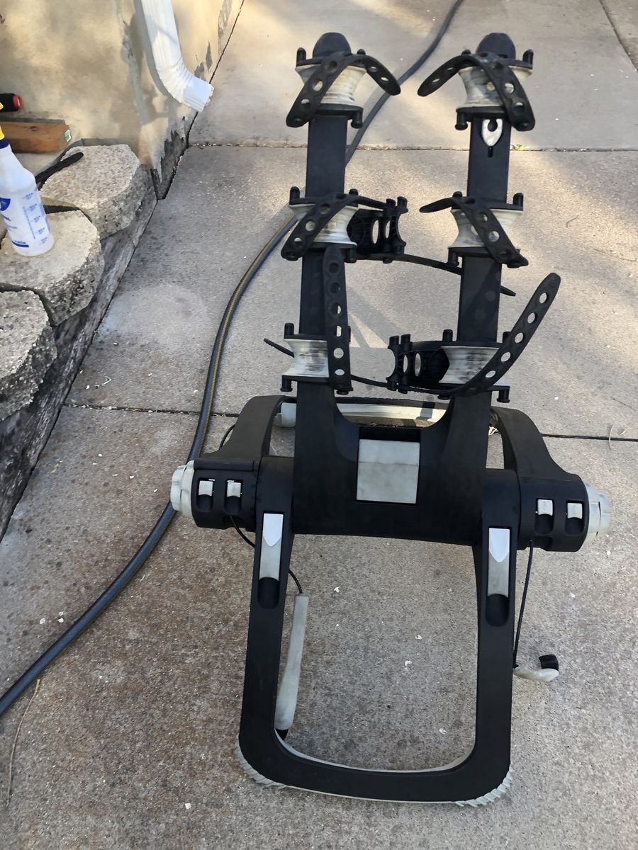 These are the absolute best in trunk mount bike racks. They actually use cables to firmly attach it. Capable of holding three bikes. This one is in good condition, not new. New they are 300 +