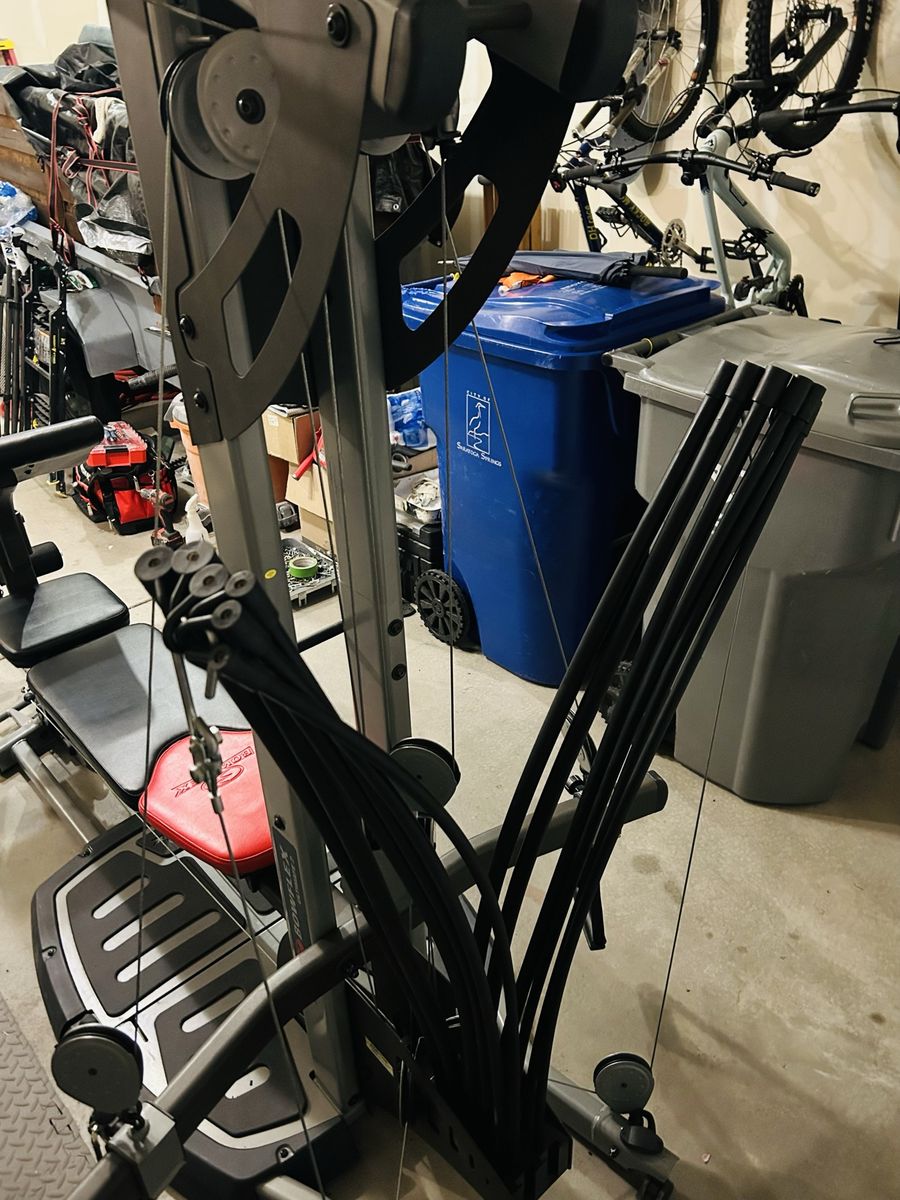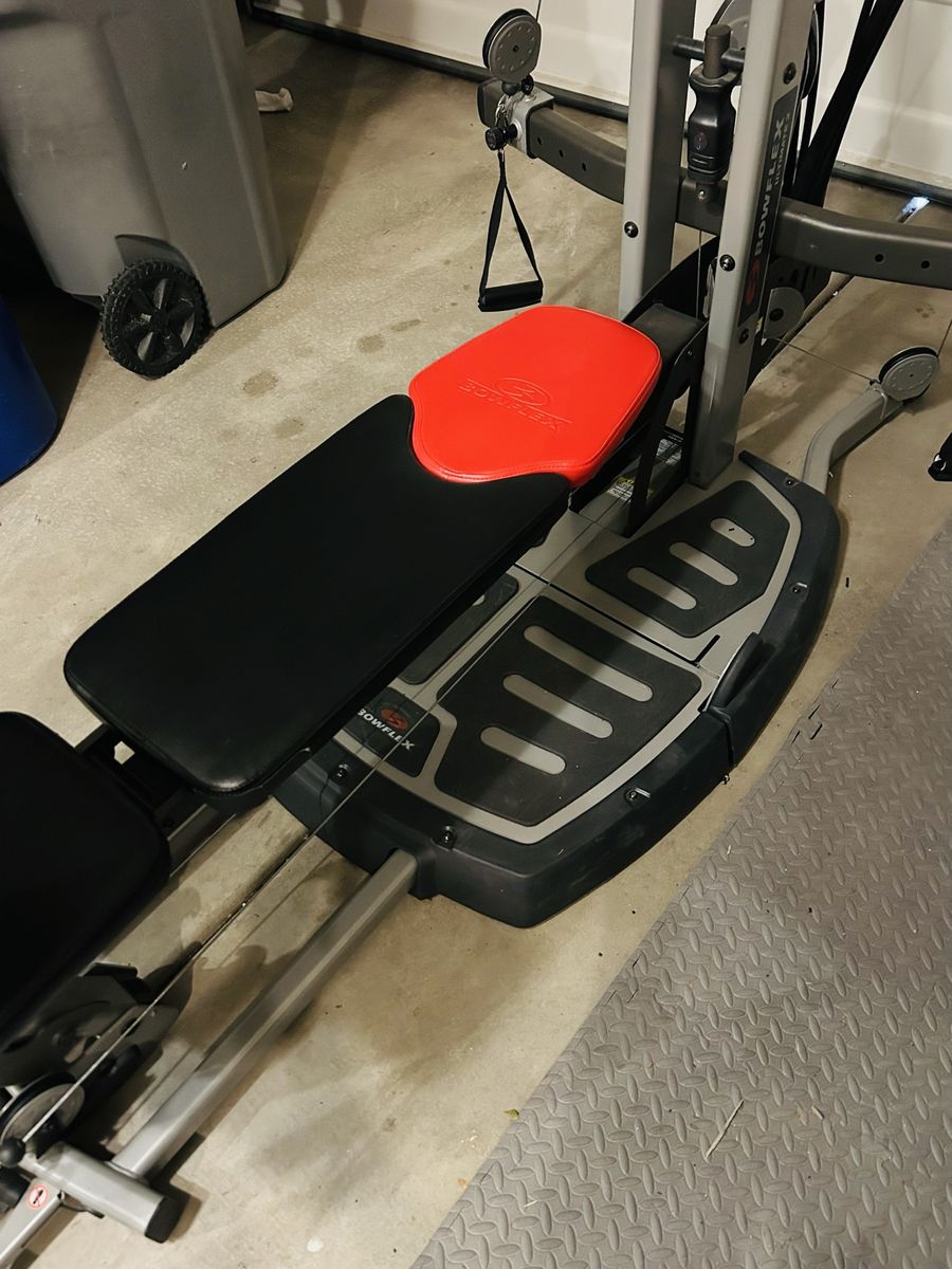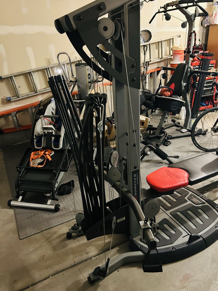 ApplePayFor sale is a used Bowflex Ultimate 2. Machine is in good shape, just a few notable blemishes. See pictures. One small portion of base has cracked plastic, but does not affect functionality whatsoever. One of the attachments has some leather tape to fix one blemish, and to strengthen the edges of the existing leather in that area. I got the machine used a while back, and it didn’t have the weight rods. Rods are used off of another machine, and they do work great! However, they are not perfectly straight anymore from the machine they came from originally. The way they are mounted will allow them to re-true their shape over time. Great workout, and machine does fold up and roll. Pull-down bar is a replacement upgrade, and handles are included as well. No video screen on this one. Sold as-is, and has been a great machine! Just went with a smaller machine and need the space. Multiple attachments for full-body gains! $150 OBO. Pricing to sell! YOU HAUL. Thanks for looking!