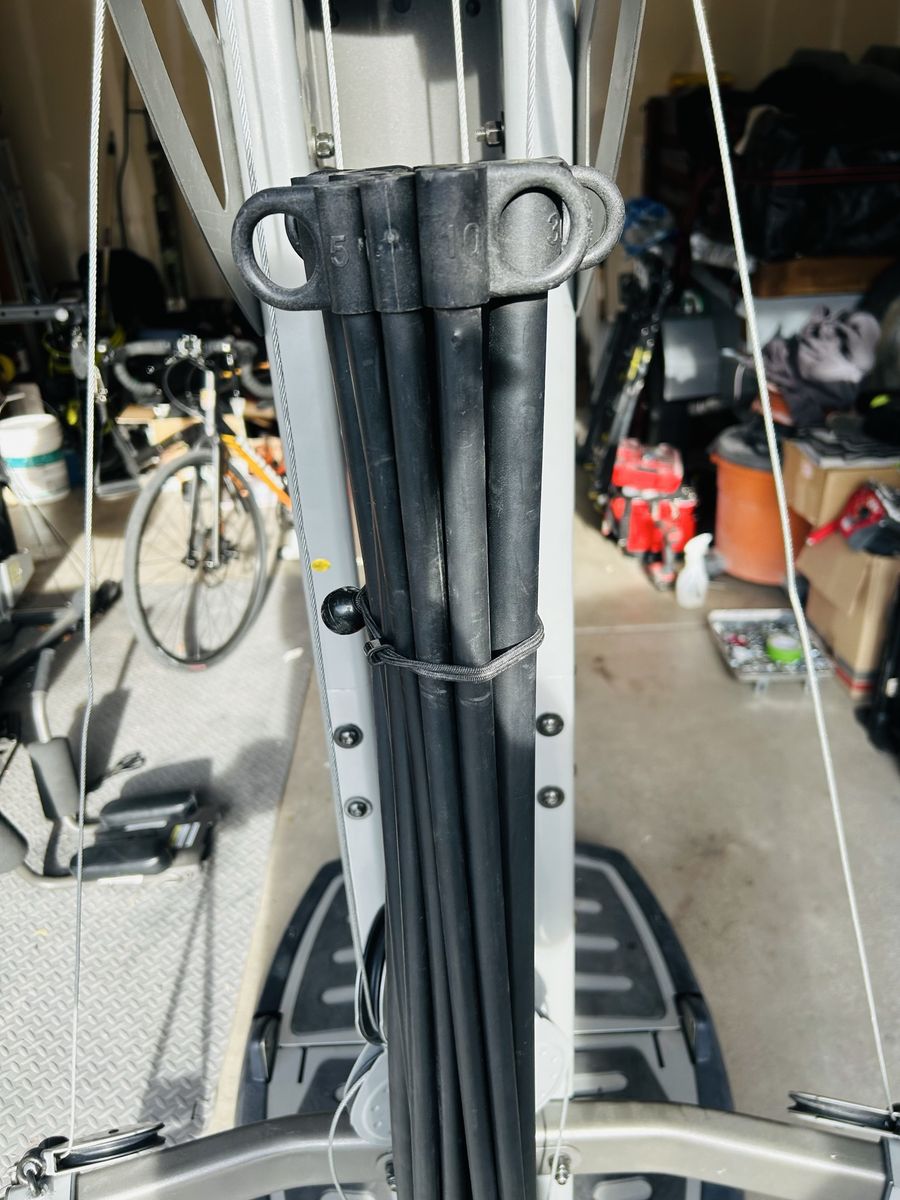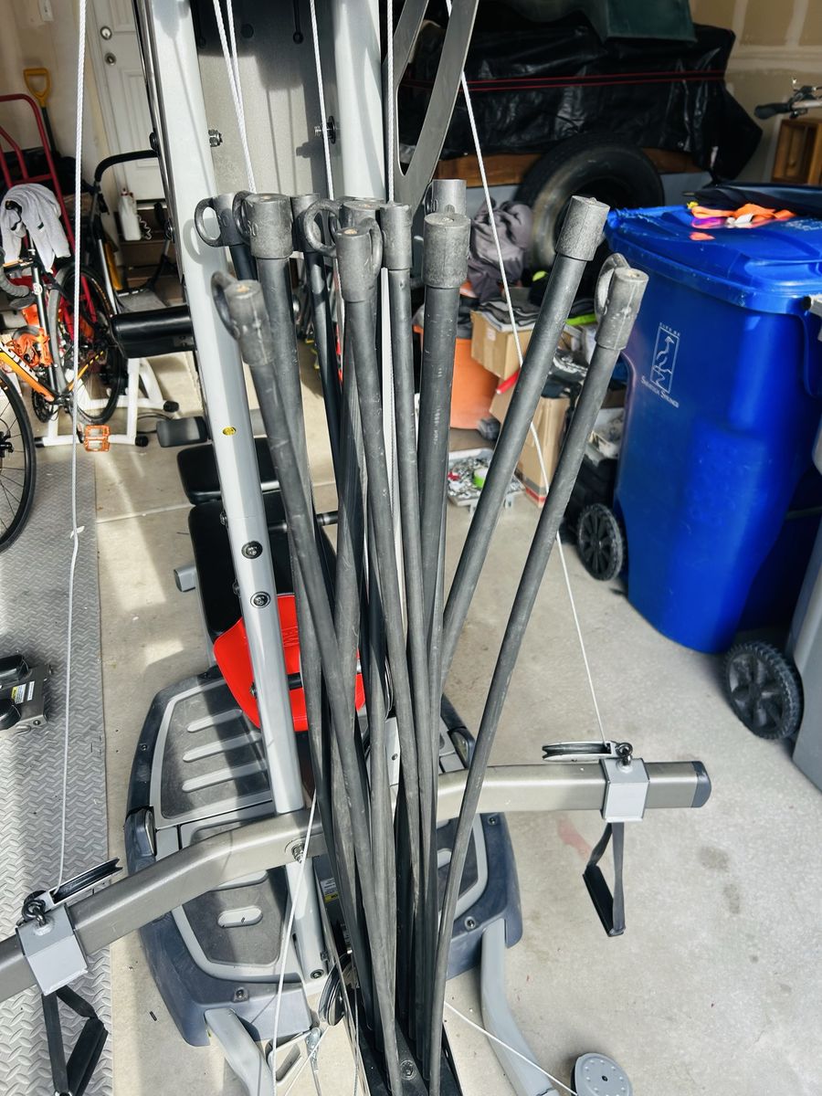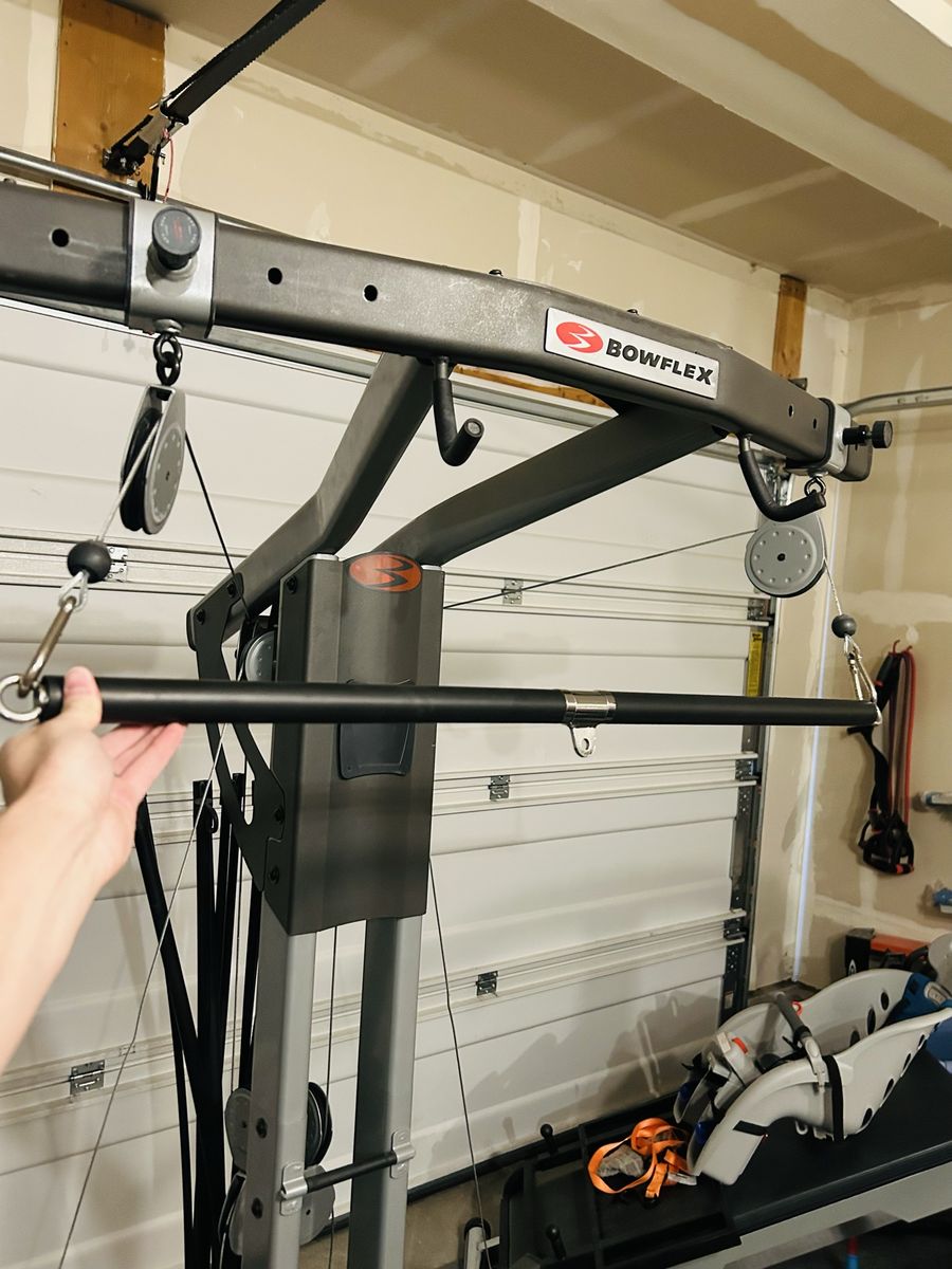ApplePayFor sale is a used Bowflex Ultimate 2. Machine is in good shape, just a few notable blemishes. See pictures. One small portion of base has cracked plastic, but does not affect functionality whatsoever. One of the attachments has some leather tape to fix one blemish, and to strengthen the edges of the existing leather in that area. I got the machine used a while back, and it didn’t have the weight rods. Rods are used off of another machine, and they do work great! However, they are not perfectly straight anymore from the machine they came from originally. The way they are mounted will allow them to re-true their shape over time. Great workout, and machine does fold up and roll. Pull-down bar is a replacement upgrade, and handles are included as well. No video screen on this one. Sold as-is, and has been a great machine! Just went with a smaller machine and need the space. Multiple attachments for full-body gains! $150 OBO. Pricing to sell! YOU HAUL. Thanks for looking!