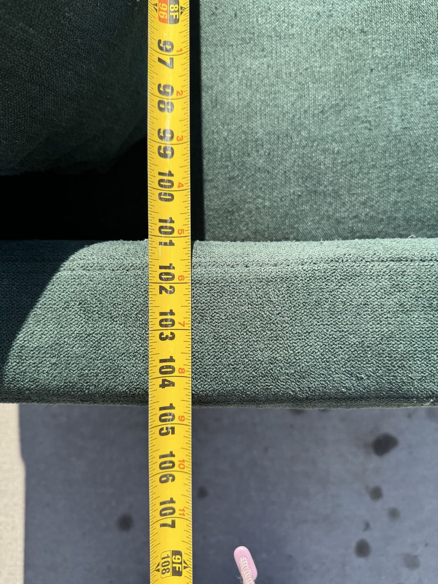 Dimensions are 104.5” x 30” Ottoman piece is 36” x 23 “