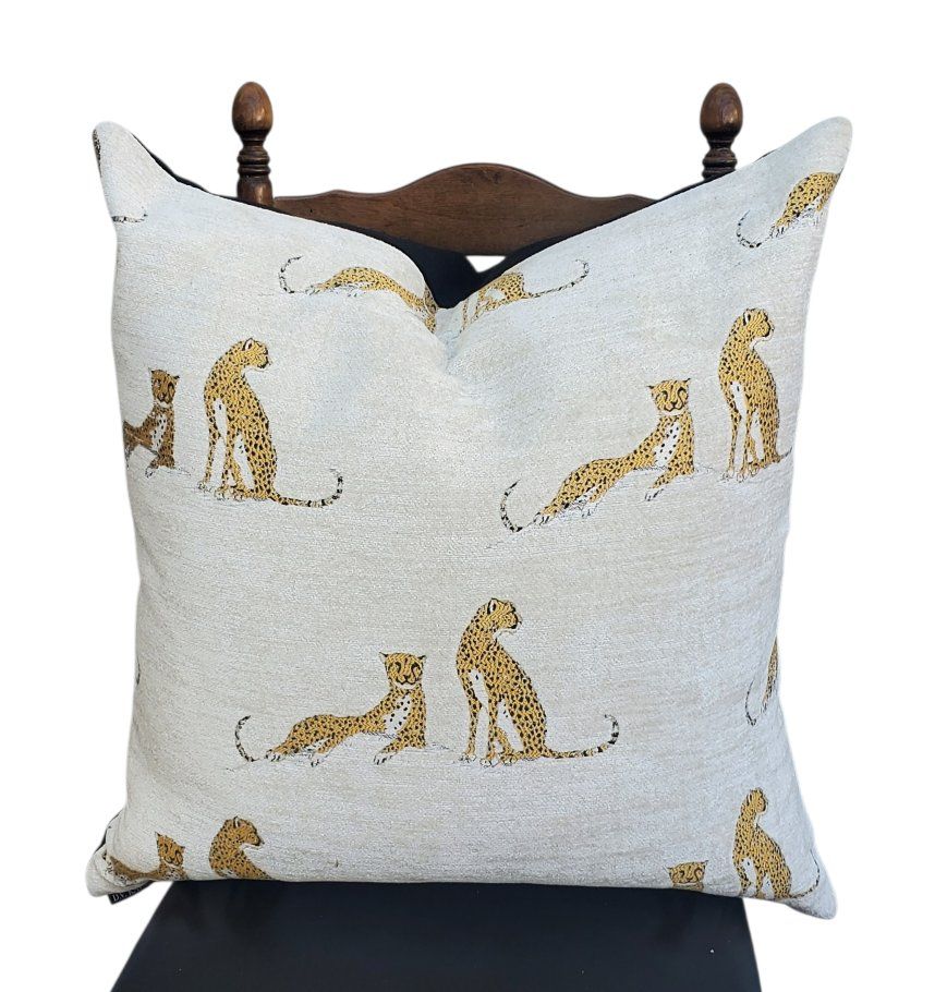 Venmointerior design | feather inserts | 24" | cheetahs | Little Iris | embroidered | chenille | black backing