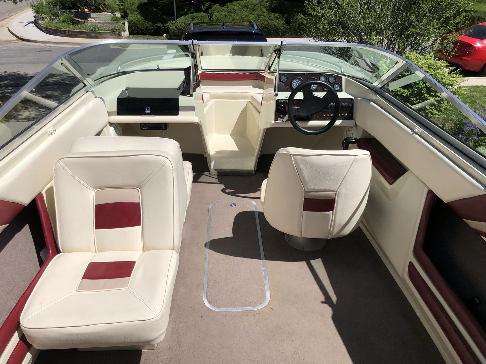 This is a one of kind Gulfstream. 21 foot open bow. 8 person capacity. This is a fantastic boat for someone looking to get onto the lake, great for the family to get into water sports or just take out to cruise around. Easy to learn to ski on. It runs perfectly, been meticulously maintained, and stored indoors. It is in great shape for being 30 years old.