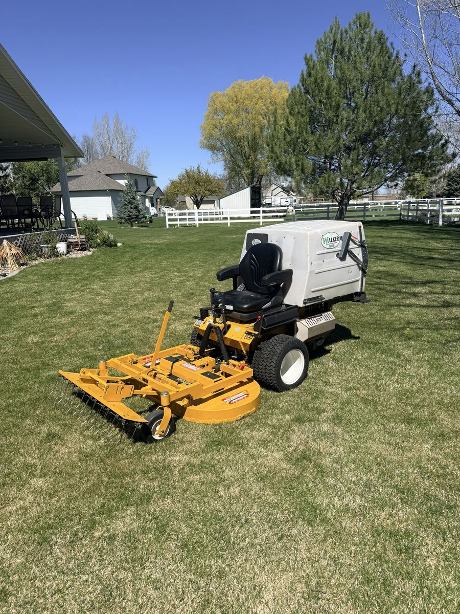 I have for sale my loved Walker mower with 48” deck and 10 bushel grass catcher. It is in impeccable condition and very well maintained with oil changes every 50 hrs. Has only been used on my yard and never commercially. It will come with power dump, grammar suspension seat and de thatcher. It has 398 hrs and could go up as I still may mow my yard with it. It has always run perfectly and stored inside. As pictures show it is in near new condition. Don’t wait to long on this one.