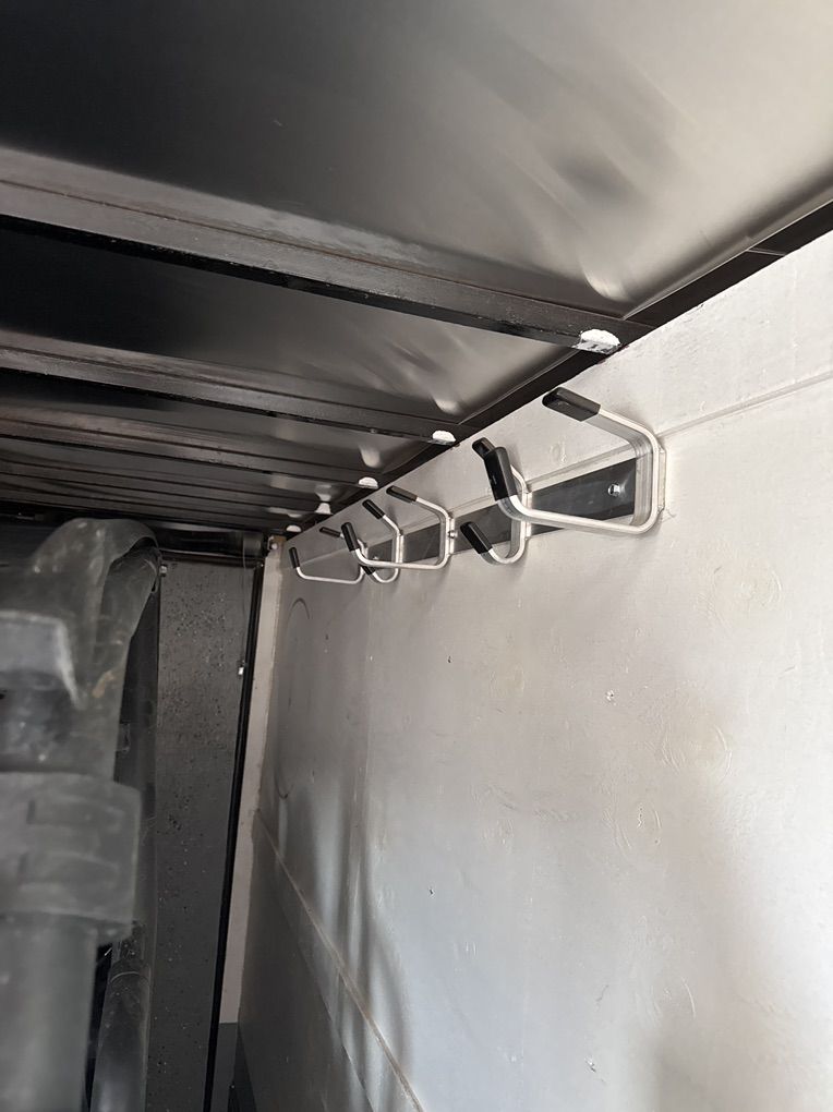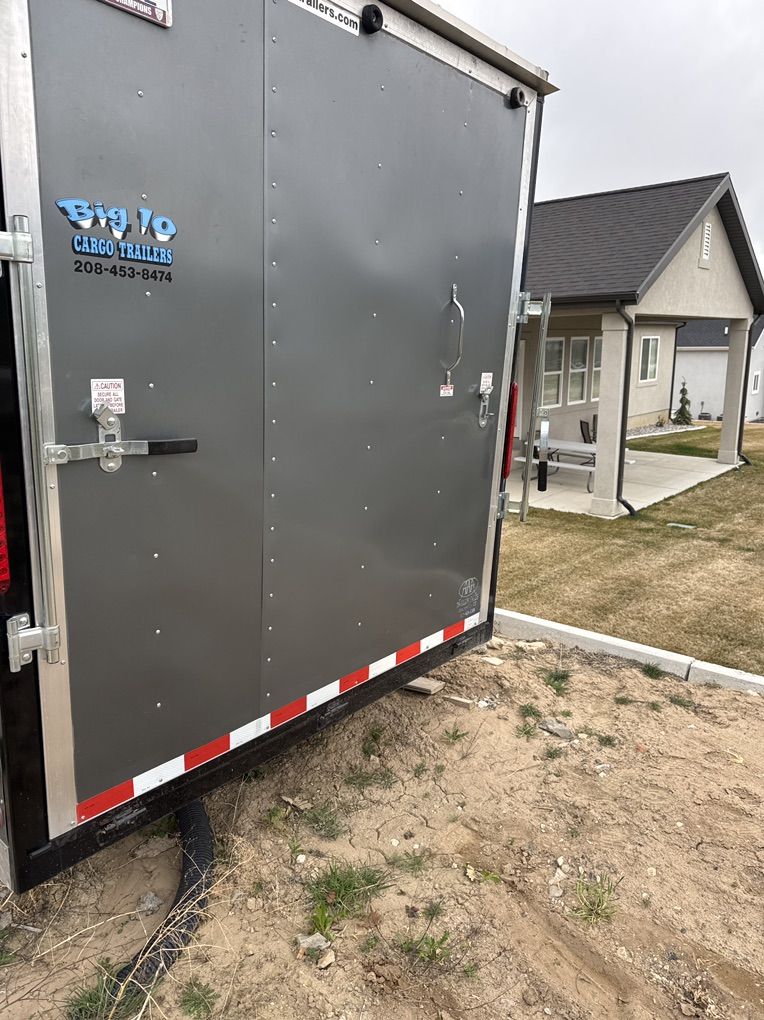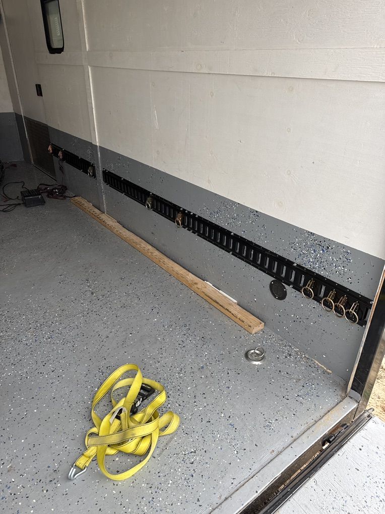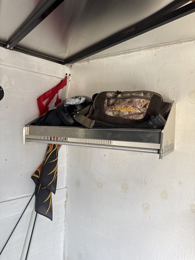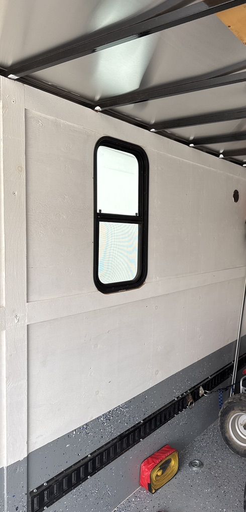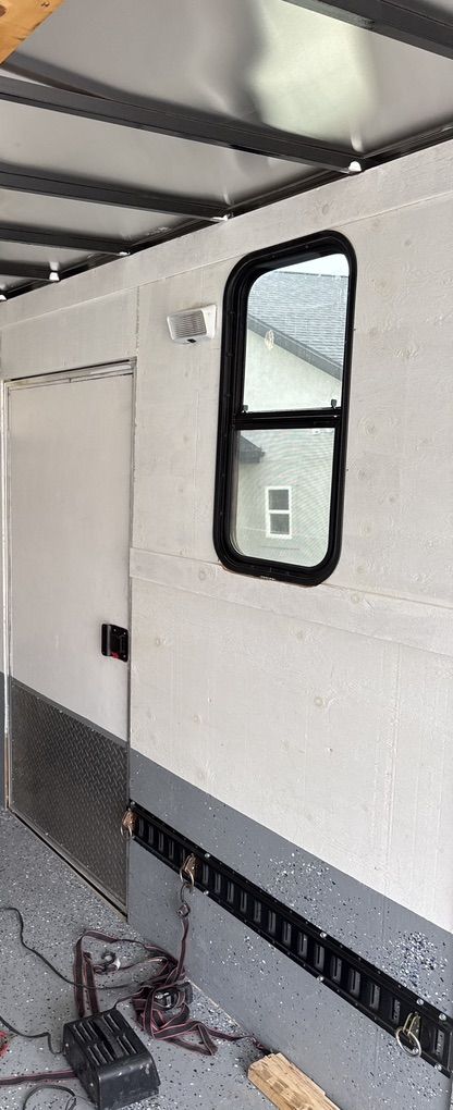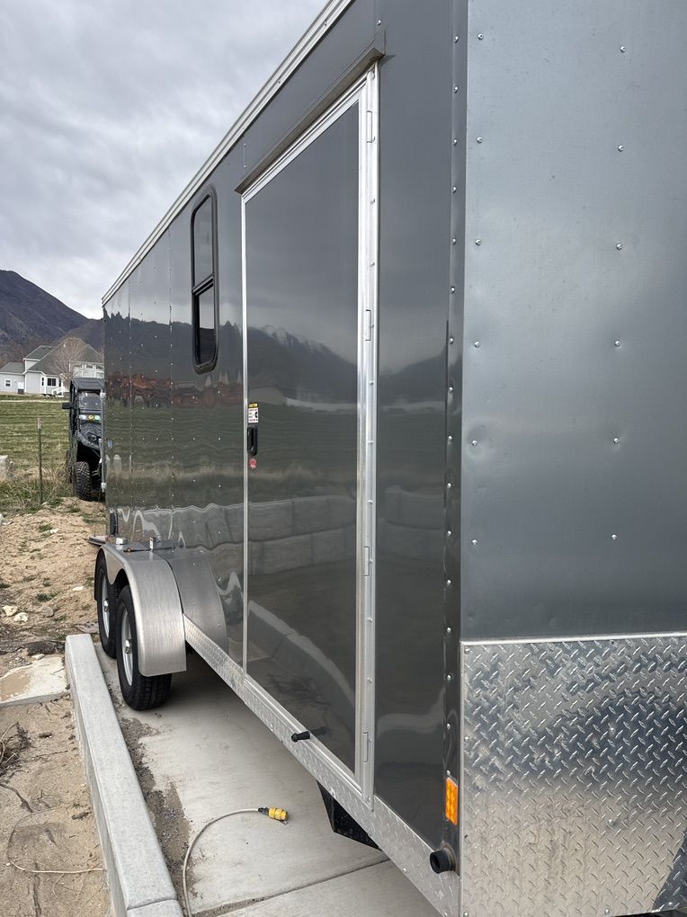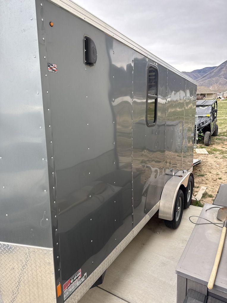 16’ custom trailer for motorcycle, or SXS / Atvs. Interior lights, ceiling vent, RV windows tinted very nice trailer floor and sides have been rhino lined. I currently hall my Kawasaki Teryx4 in it.