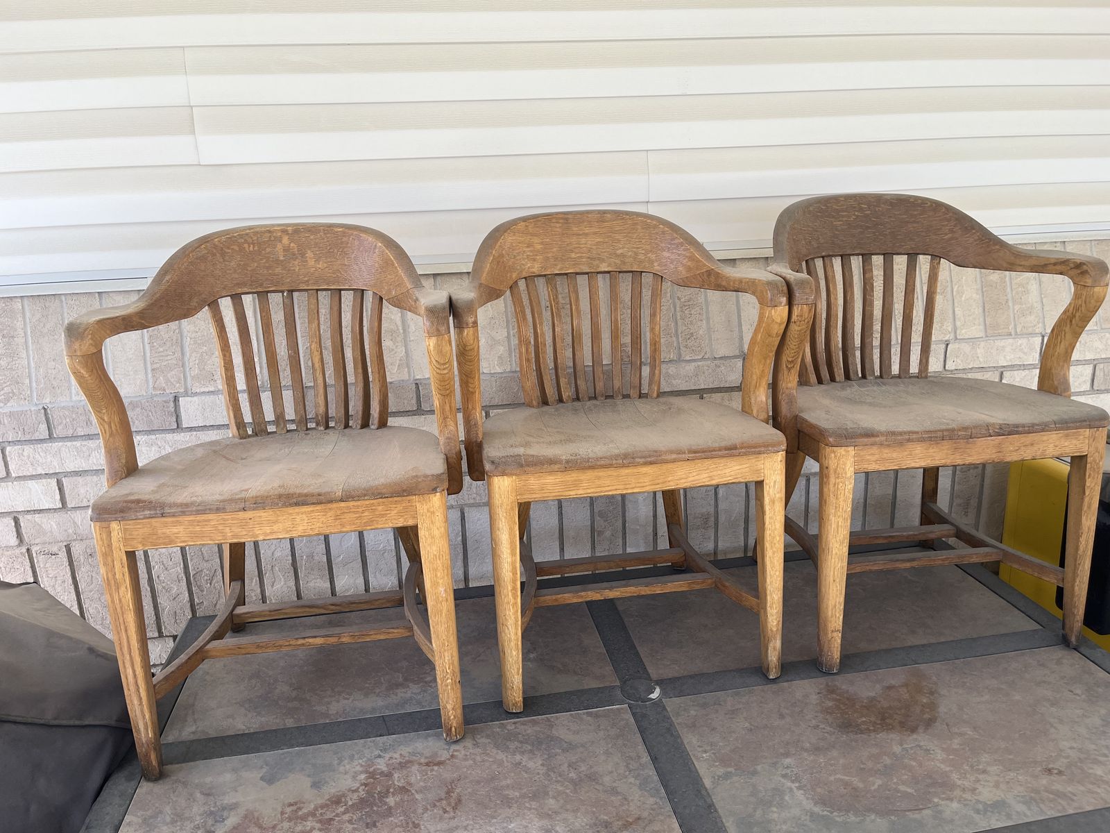3 Sturdy oak court room chairs, comfortable seats, make good stage props 25$ Each. Prefer to sell all 3 together 801-831-7172