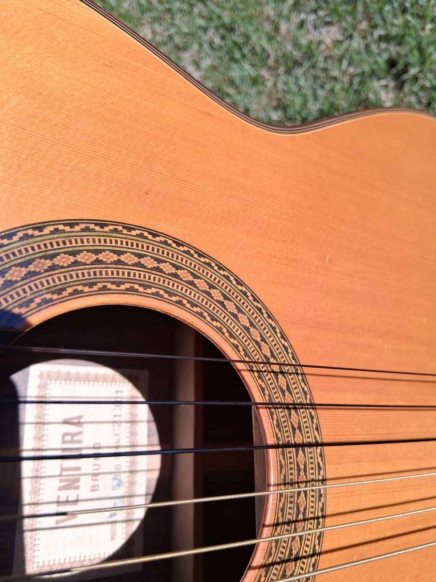 1970 Ventura Bruno Classical Guitar v 1588. This is a gorgeous sounding guitar bought in 1970 at Hart Bros. Music at the Cottonwood Mall by a 17 year old girl on her birthday. Alas she must now part with it because she is moving to Texas and afraid that the humid climate will destroy this beautiful instrument. It has a ding at the top face of the guitar that looks like a snake bite and the lamination is slightly cracking around the neck do to age but the neck is solid as is the bridge. Comes with the case, Asking $199 FCFS text Reed 801-347-7466