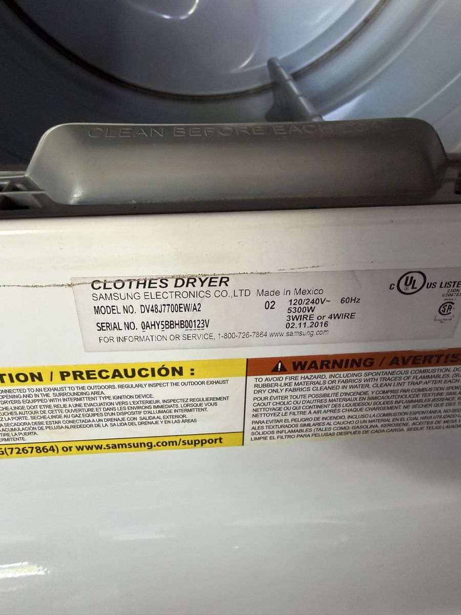 VenmoSamsung large capacity dryer in great shape. Heats and dries great without any squeaks or weird noises. It is currently in my garage and you could test before purchase. Model number DV48J7700EW/A2. Asking $165 obo. Pick-up preferred but delivery can be an option depending on where.