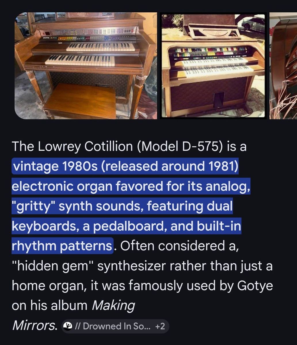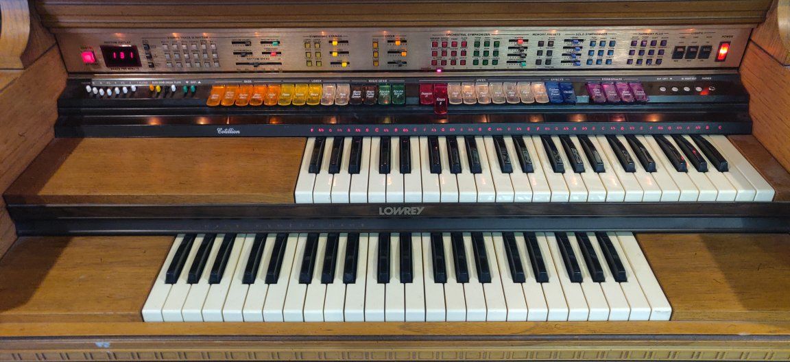 VenmoCool organ from 1980/81. Dual keyboards, lots of effects. Handed down from family. Everything seems to work but it's too complicated for me. Bench, light and manuals included.
