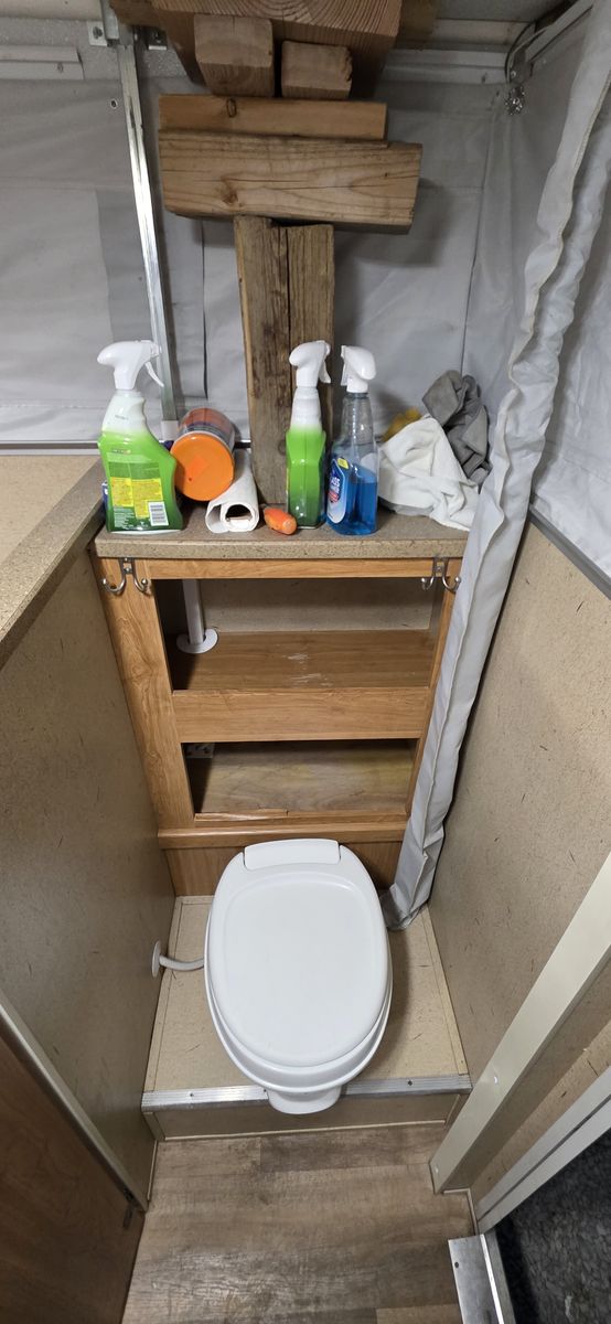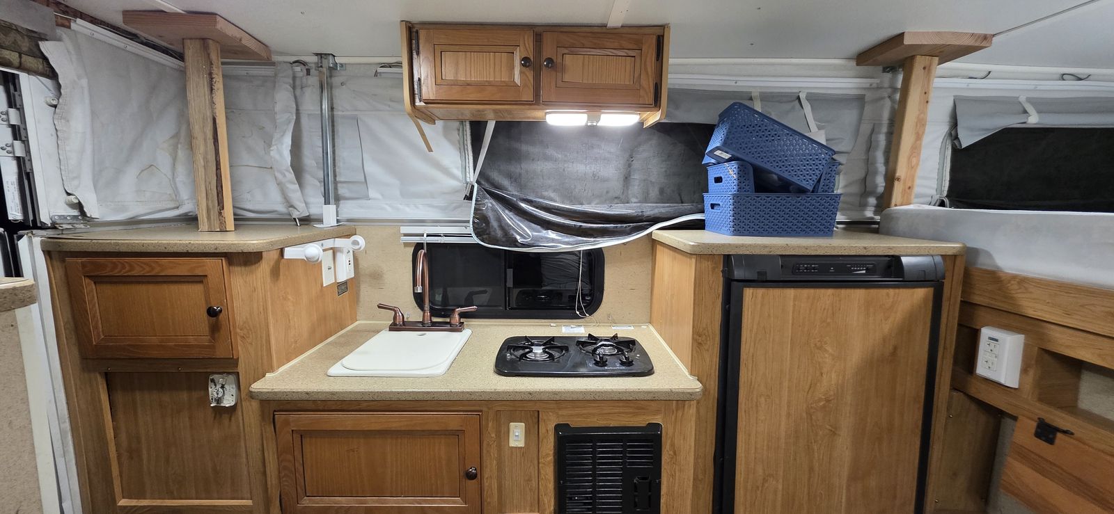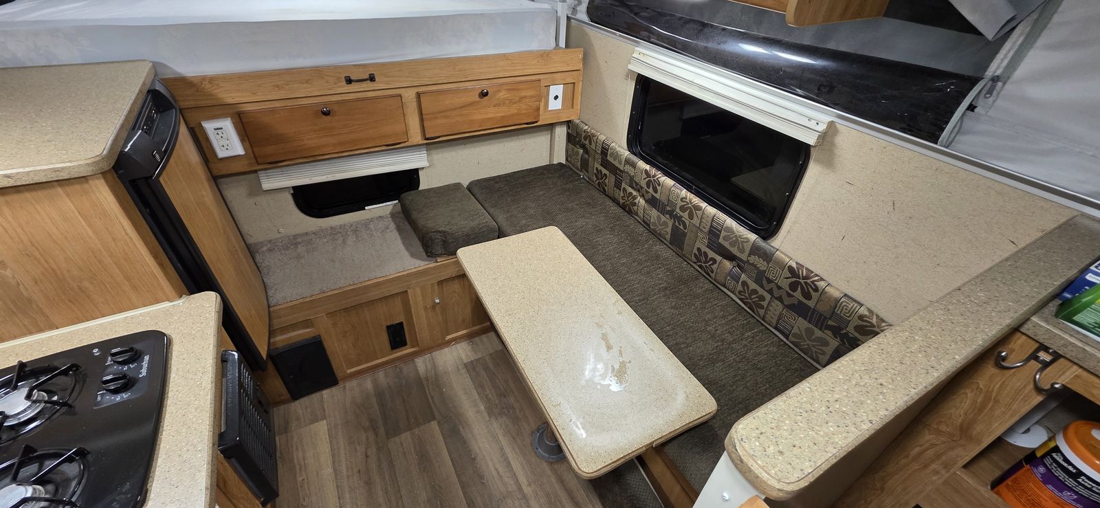 This is a solid camper overall — everything works great — but the spring-loaded lift system will need repair/replacement (common issue on these). Because of that, we’re offering two options: