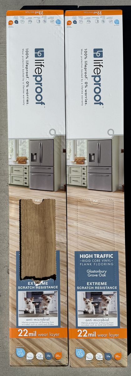 6.5mm thickness x 7.46 in. width x 47.8 in. length Planks per box: 8; sq. ft. per box: 19.81 Waterproof