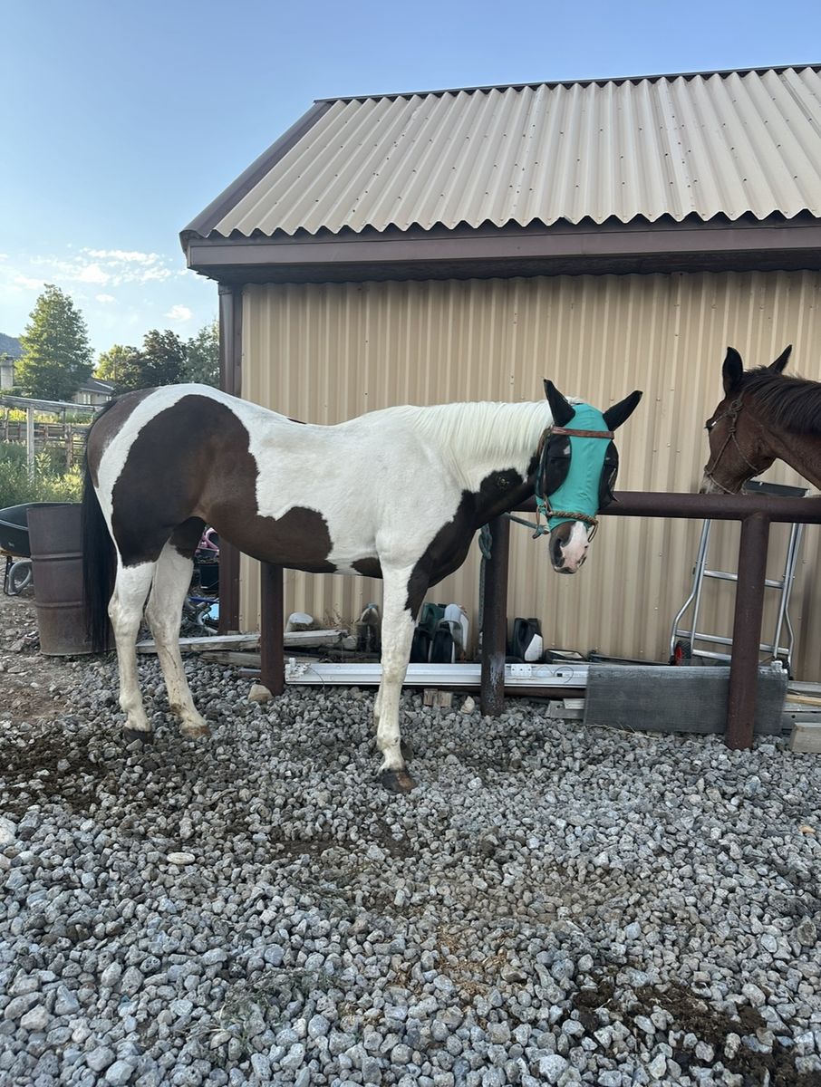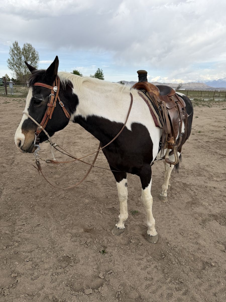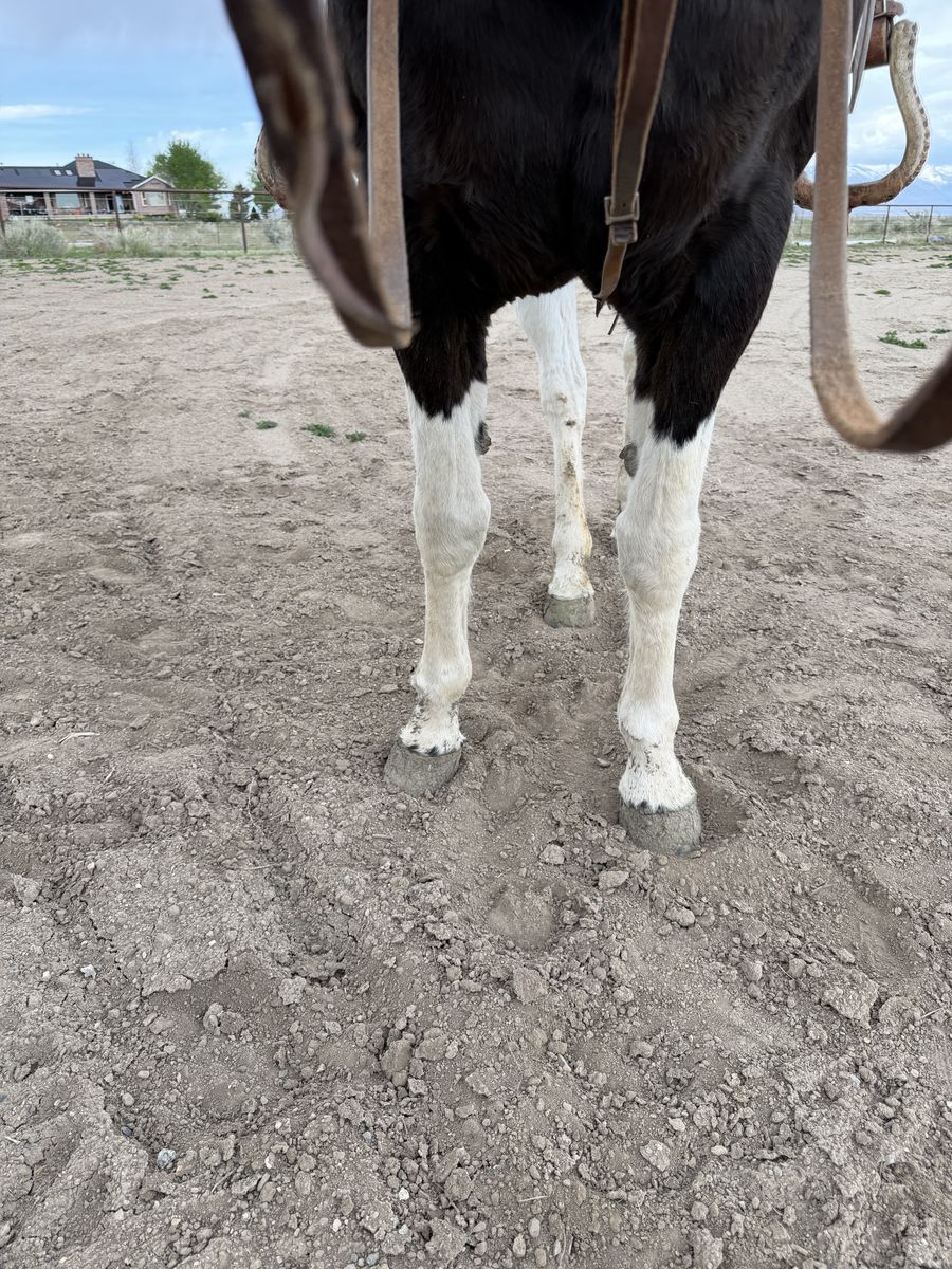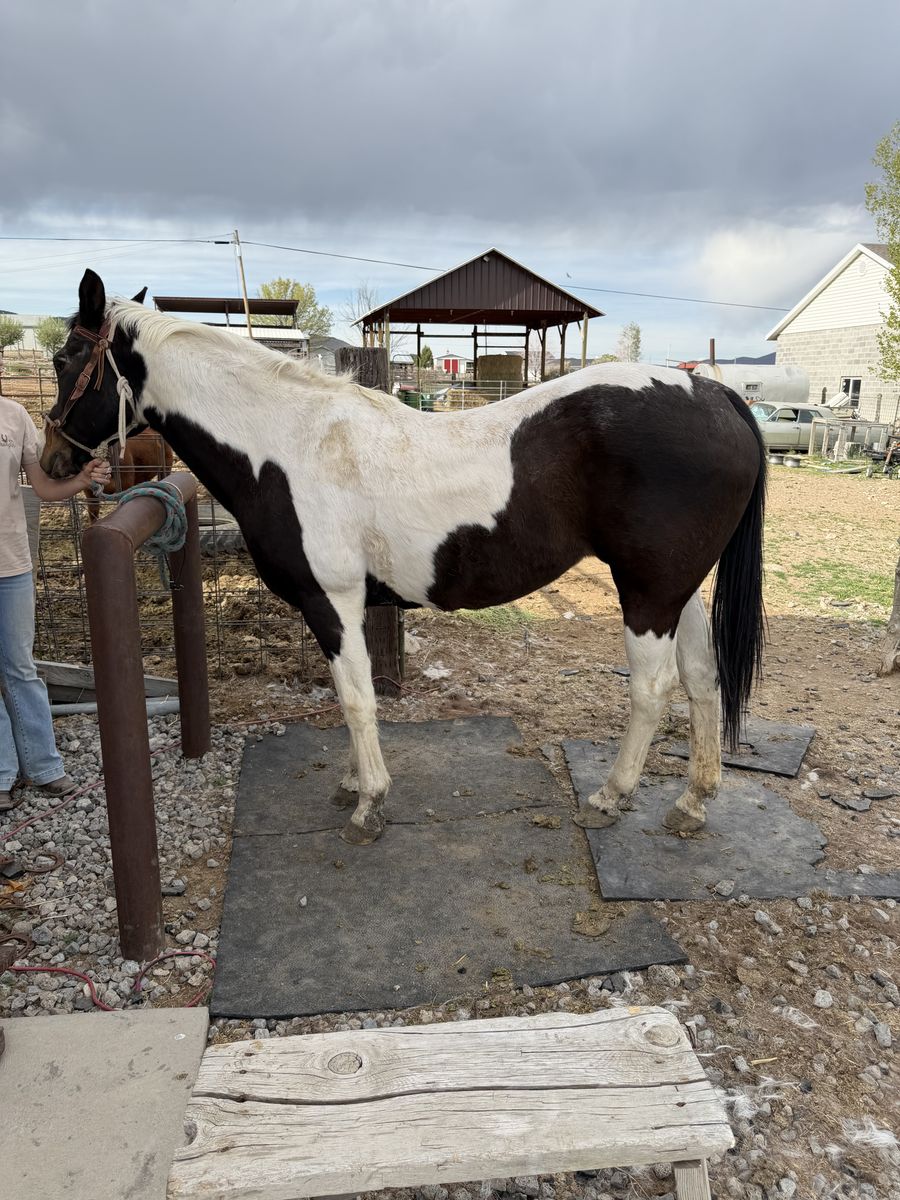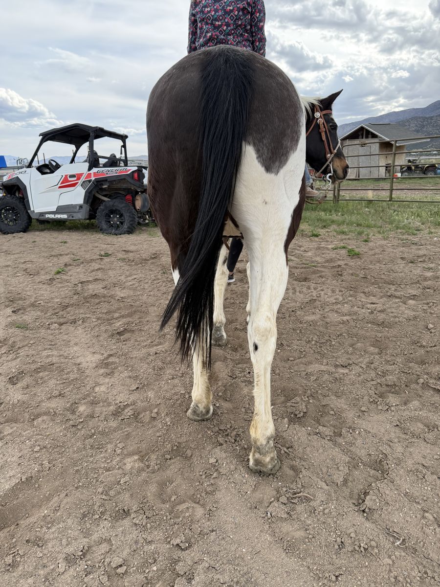 This is Dolly! She is 21 years old, and in great shape. I have her papers. We've never had any issues of lameness, being sore, or arthritis. She stands great for the fairer, loads and hauls great. The biggest issue we've had with her is she can be buddy sour. we bought her for my 10 year old but she needs a little more experienced rider. A handy horse kid would do just fine on her, but she can be little stubborn, and hard headed which is why I would recommend someone with a little experience. she has never offered a kick or a buck, but can be a little pushy on the ground. we just had her trimmed last week, and her teeth floated last summer. let me know if you have any question!