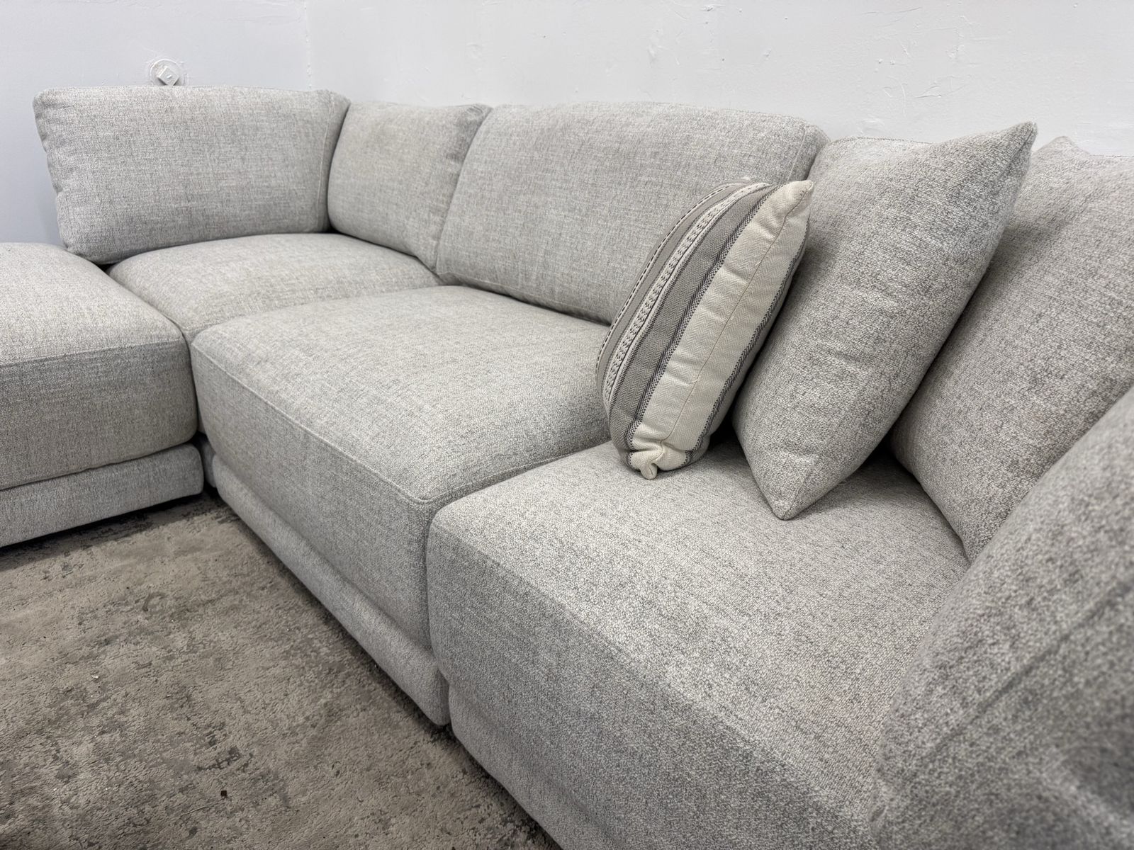 I am selling a Gray Costco Dayna 4-piece Fabric Modular Sectional Sofa Couch and Ottoman in good condition!