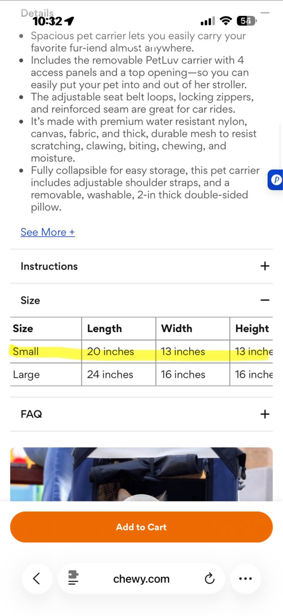 ApplePayPetLuv Premium Soft-Sided Cat & Dog Carrier, Navy-small. Measurements in the last photo.