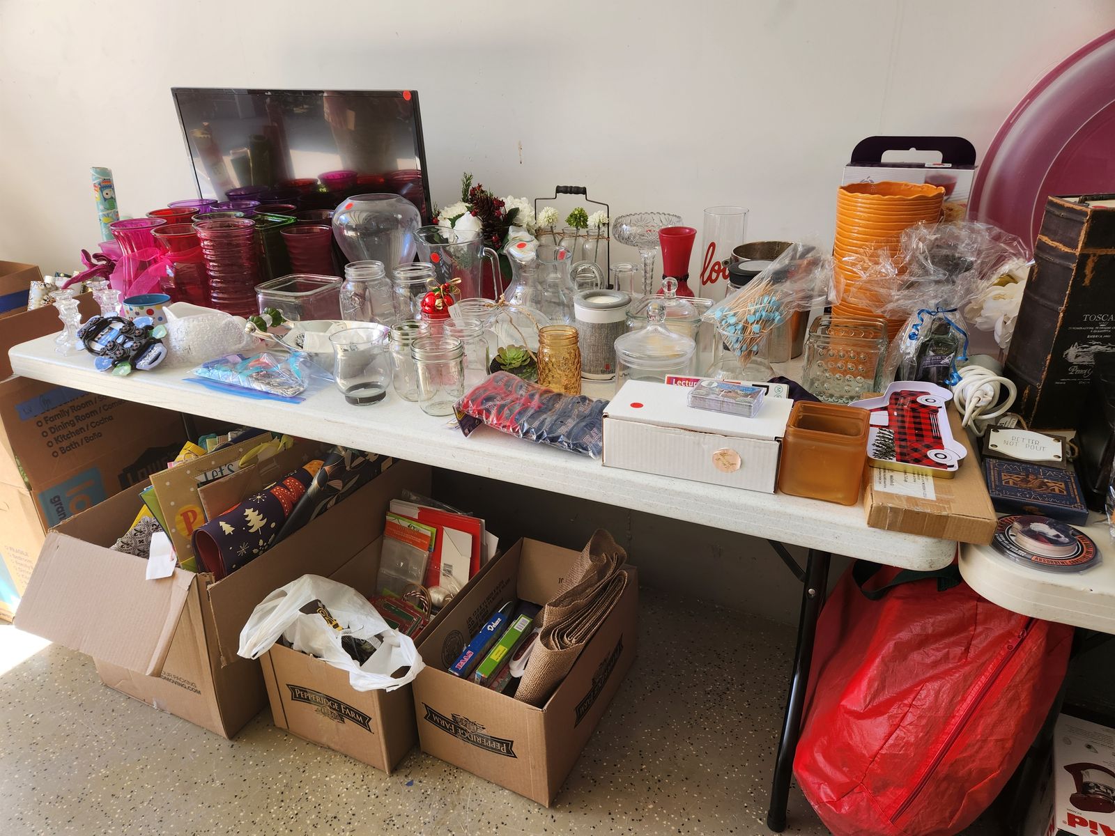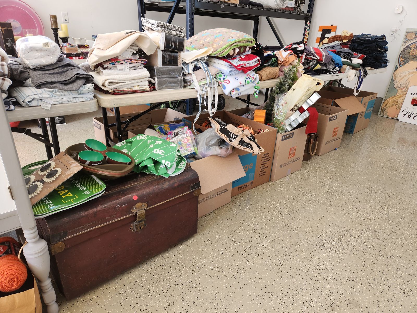 Join us at our sale Ex-large bookshelf (103”x83”x15” deep), sofa, small floor clock, King size NexGel mattress, TVs, large chair, dresser, Large dining room table, tables, shelving, Lots of holiday décor, Large art pieces, fun decorative signs, beach cart, kitchen ware, lamps, glassware, kitchen ware, Bikes, hover board, large craftsman snowblower, purses, Children’s games, pillows, patio furniture, patio cooler, lots of frames, clothing, lots of shoes,