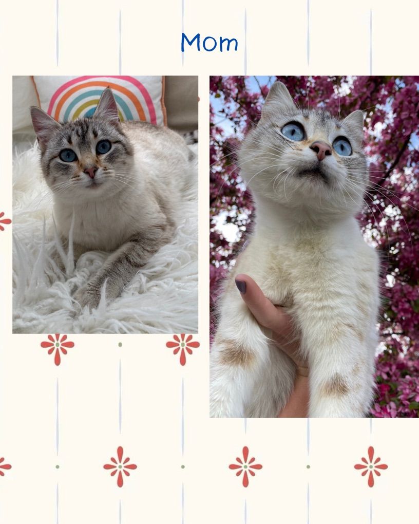 VenmoWe have the sweetest kittens looking for their forever homes! Choosing the right kitten is important—they’ll be your loving companion for the next 10–15 years. We currently have 3 girls available. These kittens have been raised in a caring home where they’ve been handled daily, played with, and lovingly socialized by our three girls. They were born April 8 and will be ready to go to their new homes between May 23–29. Their mama, Olive, is incredibly sweet, affectionate, and lovesbeing held. She is a Siamese lynx’s point. She has a gentle, loving personality that we already see in her kittens. We care deeply about these kittens and want them to go to homes where they will be loved just as much. Adoption Details:\