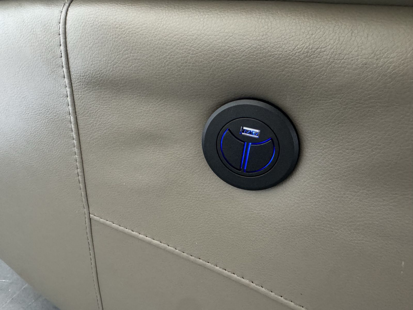 Features: Top Grain Leather with Vinyl Match on Sides and Back USB Port 360 Swivel Back comes off for easy transport