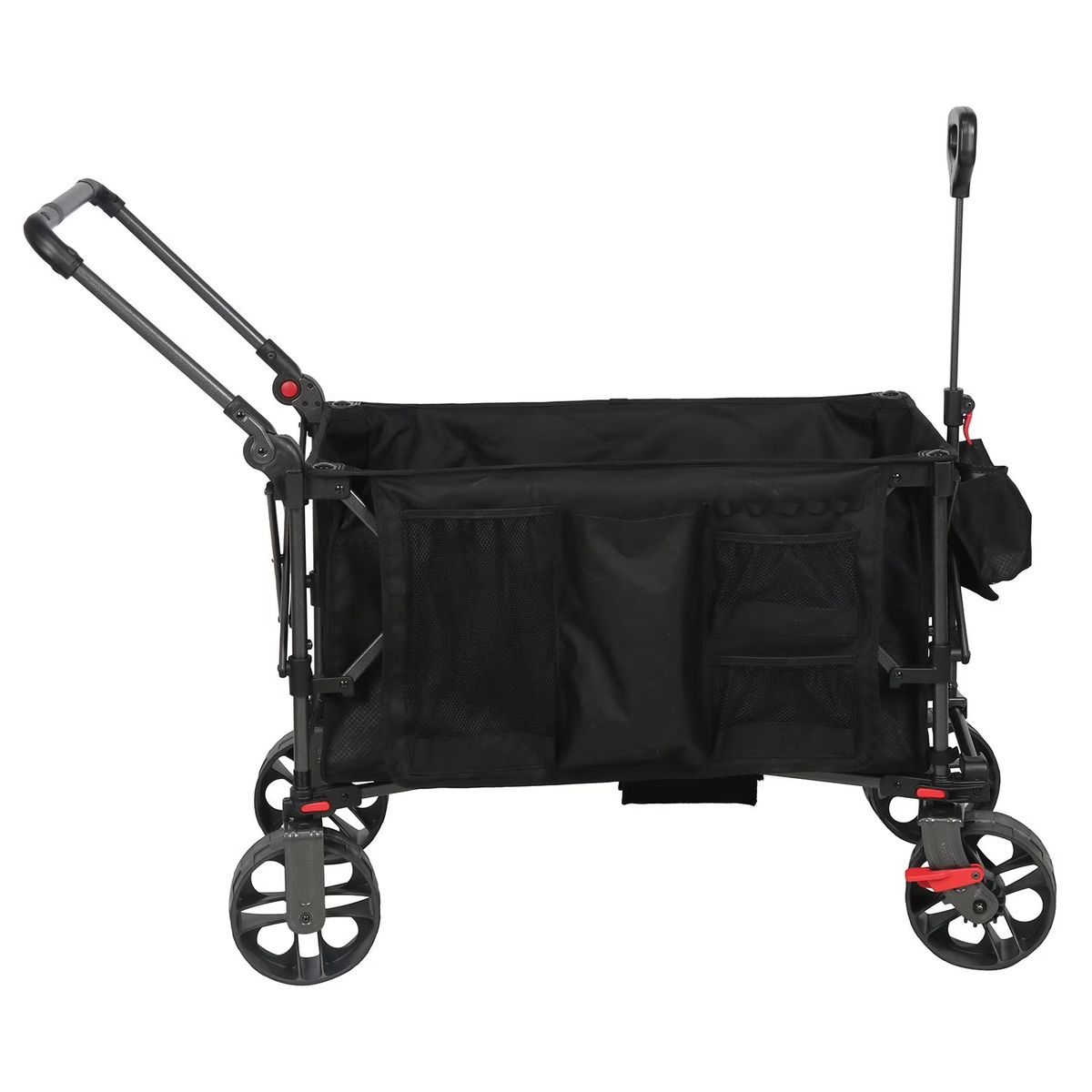 Designed with high-quality injection-molded wheels featuring edge-to-edge tread, this wagon is capable of traversing various surfaces with ease. Whether you are navigating grass, dirt, or pavement, the oversized wheels provide a stable and smooth ride. The extra-long, extendable handle reduces the strain of towing, giving you better leverage and control regardless of the load size. When the day is done, the quad-fold design and integrated easy-fold clip allow the wagon to collapse in seconds for space-saving storage.