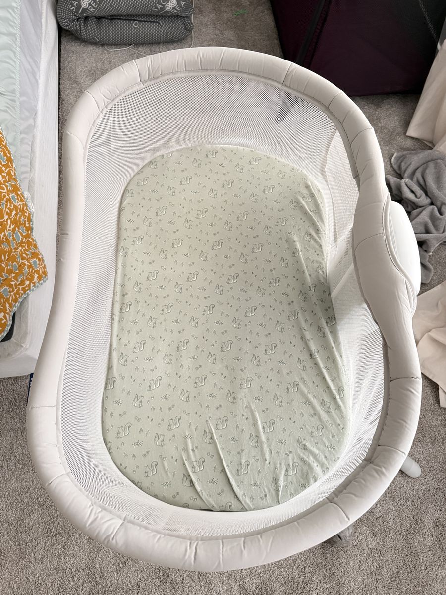 VenmoLightly used bassinet, I have LOVED this bassinet for the newborn stage especially during the middle of the night feeds or when you want to quickly check on your baby (first time parent anxiety). I purchased 2 GOTS cotton certified sheets and 2 waterproof sheets for it as well (I don’t recommend layering them, the waterproof can be used on its own as a sheet). Perfect condition, comes packed in the box.