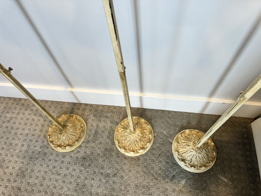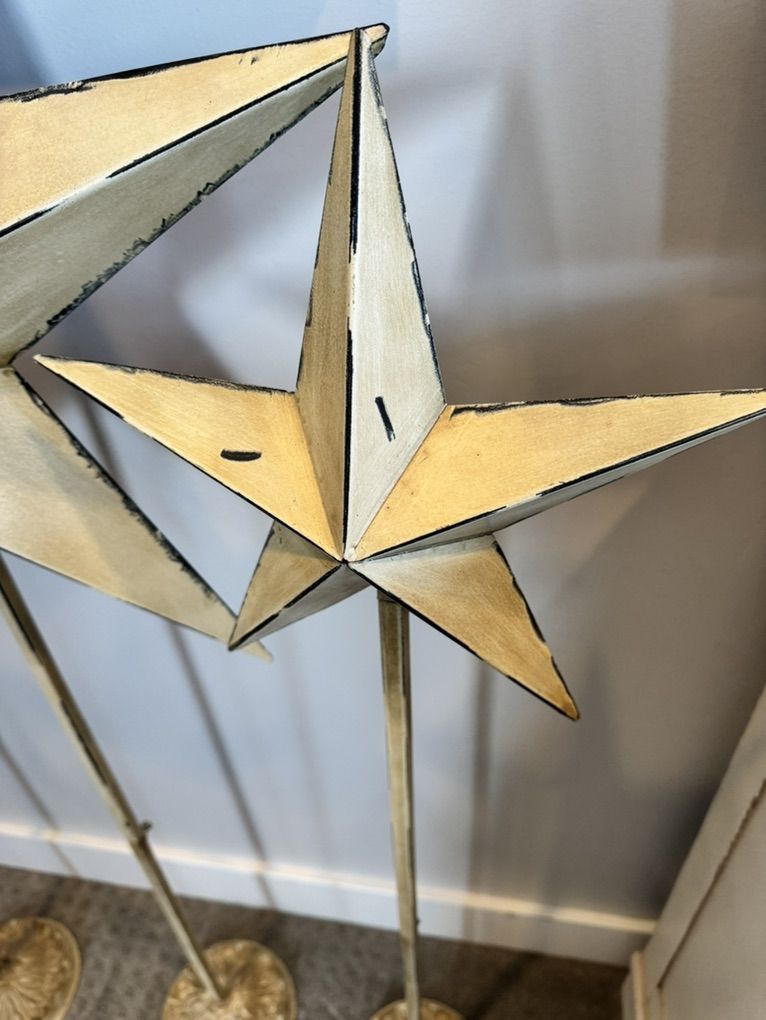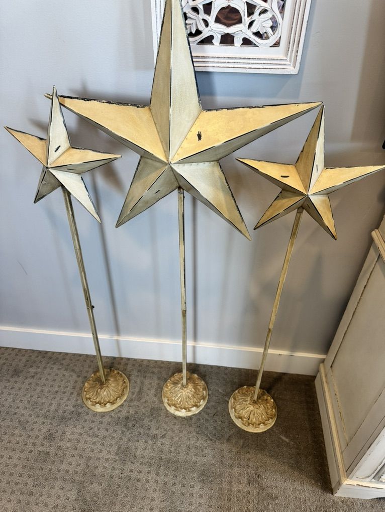 ApplePaySet of 3 decorative metal star stands in a distressed gold/cream finish.