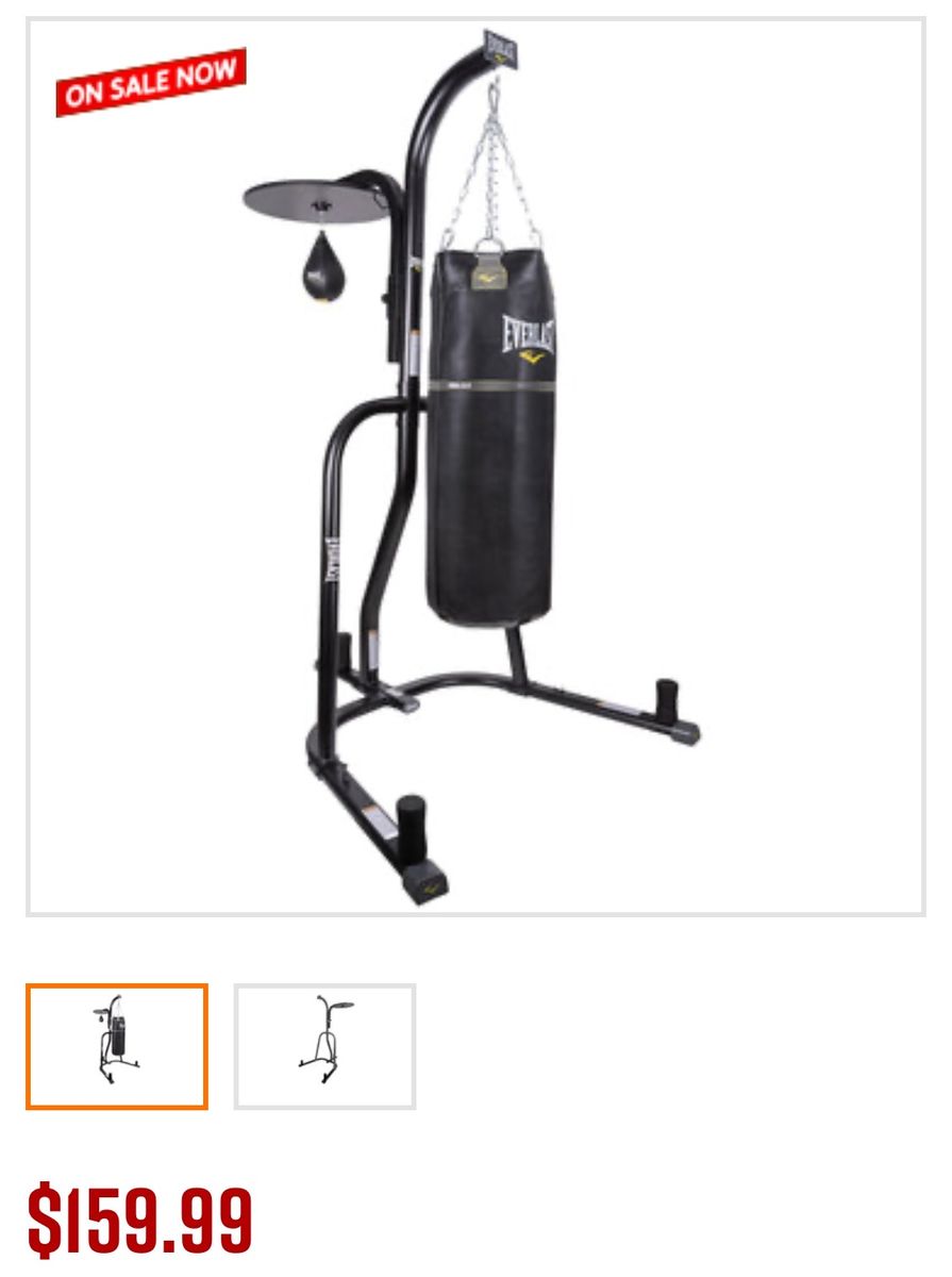 This will come with a 80Lb Proforce heavy bag, Everlast stand and speed bag. I have the stand disassembled for easier transport if needed. The pros: Light use and minor paint “damage” on the stand. The cons: Does not include the specific wrench for assembly nor the instruction manual for assembly. I no longer have space to store and would like to sell it to someone that will get more use out of it. Send me a message if you’d like to know the specific wrench size needed. Thanks! 125 obo (MSRP ~$250)