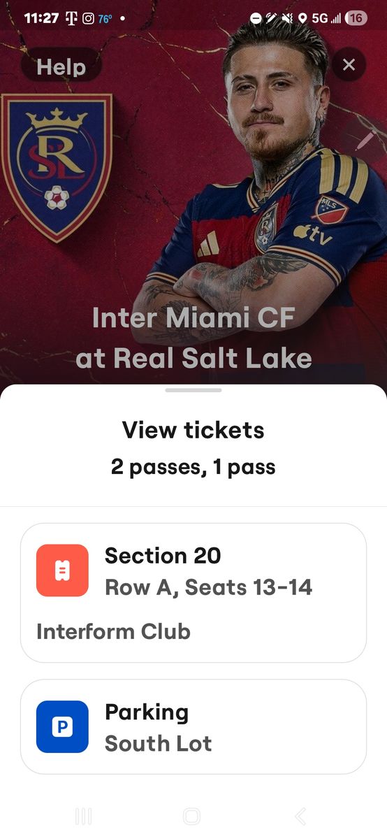 CashAppTickets are front row behind RSL bench, parking, and dinner/drinks at the Interform Club.
