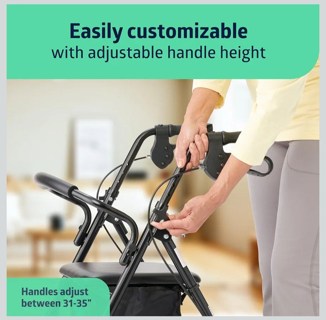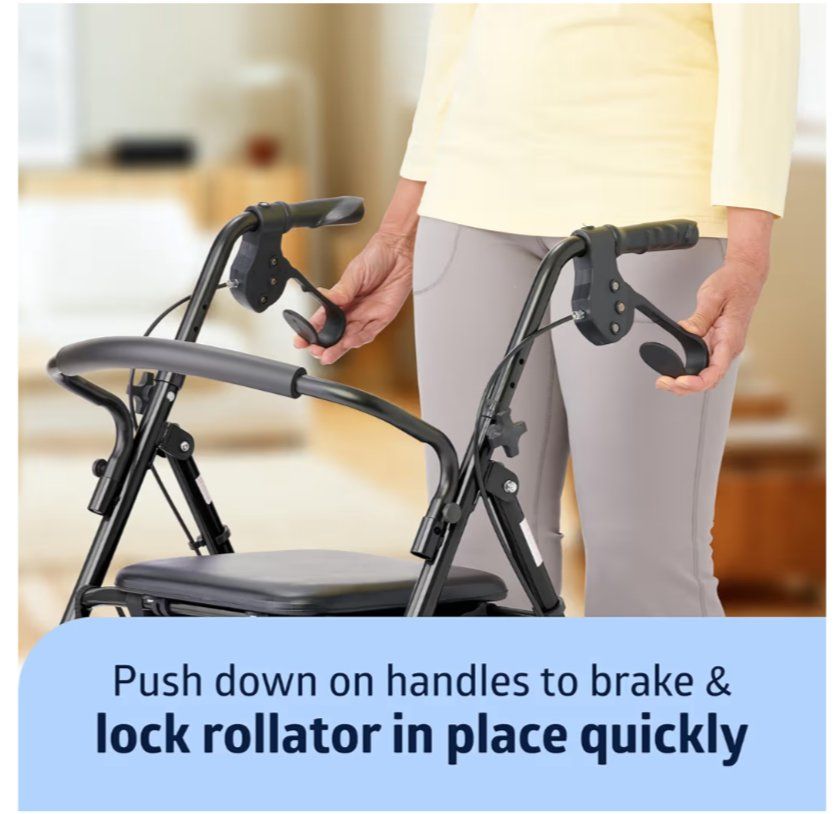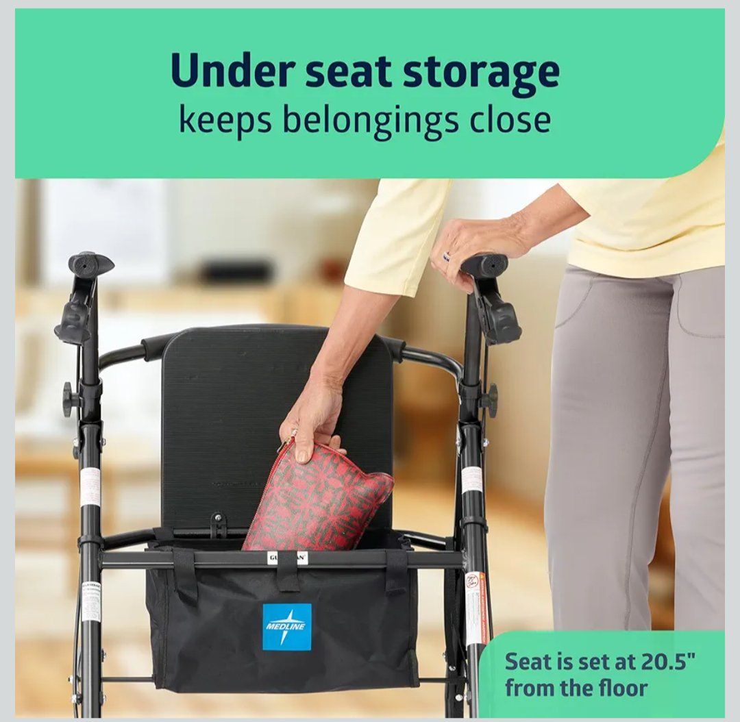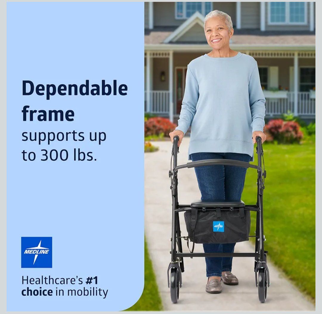 Medline Steel Rollator Walker for Adult Mobility Impairment, Black, 300 lb Weight Capacity, 8” Wheels, Foldable, Adjustable Handles, Rolling Walker for Seniors