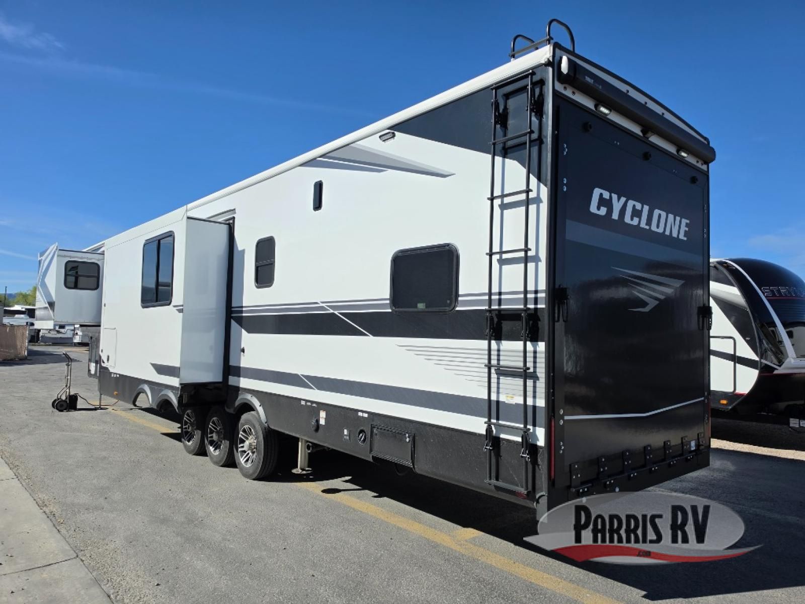 Satisfy your wanderlust with a Heartland Cyclone fifth wheel toy hauler! You won't have to sacrifice any luxury either, with indulgent features like the ducted, fully enclosed, and heated underbelly provides added protection and warmth. Inside, the LED interior lighting throughout ensures that every corner of your RV is bright and inviting, and the bathroom skylight brings in natural light and fresh air, creating a welcoming and refreshing space. Plus, the central command center with built-in tank monitoring keeps you informed and in control, making it easy to manage your resources. Also, the camping in comfort package includes diverse features such as Dexter axles with ABS and tow assist with sway mitigation, and the Keyed-Alike lock system ensures that all your locks are keyed the same, providing added security and convenience. Come find the perfect model for you today!