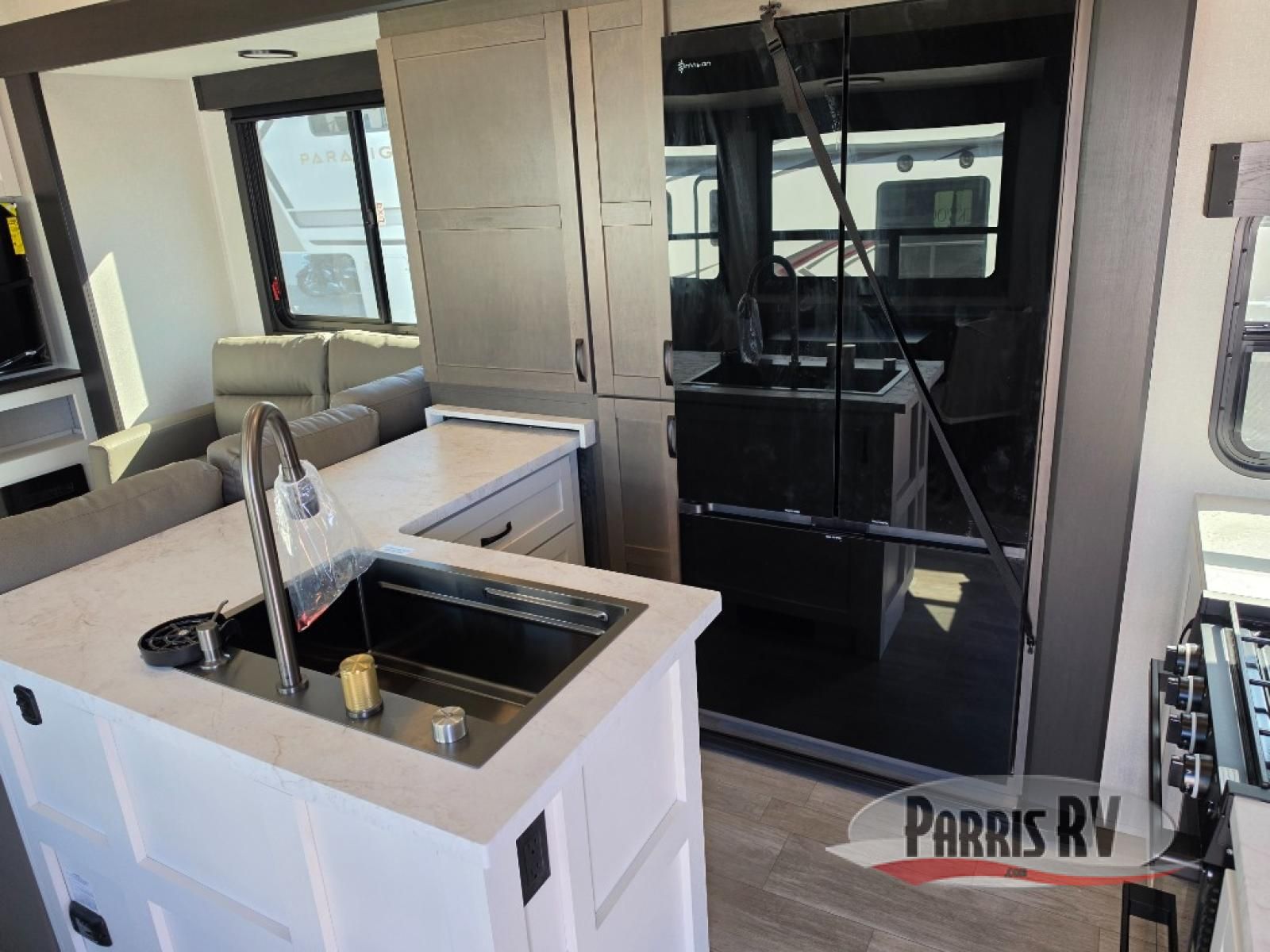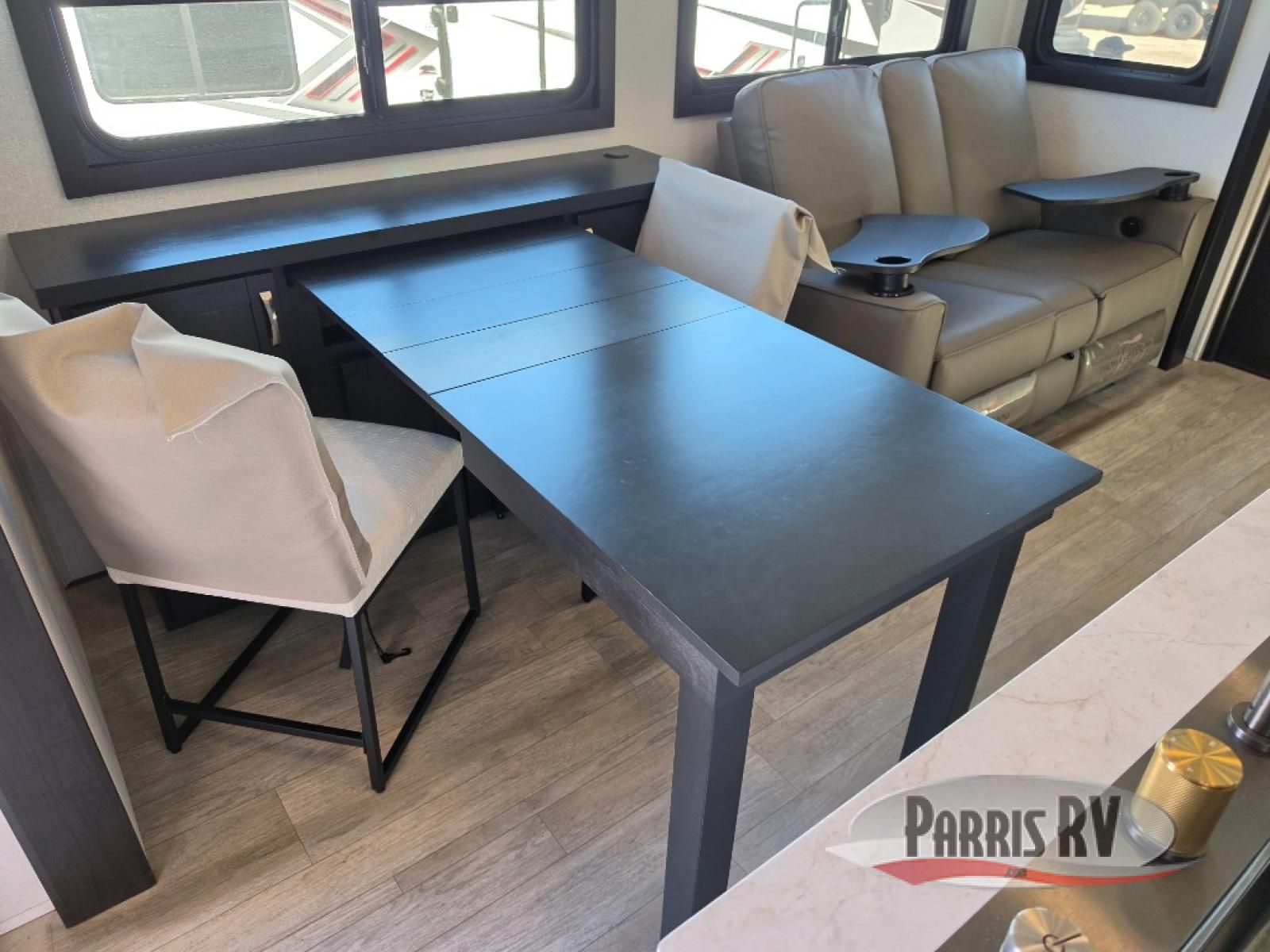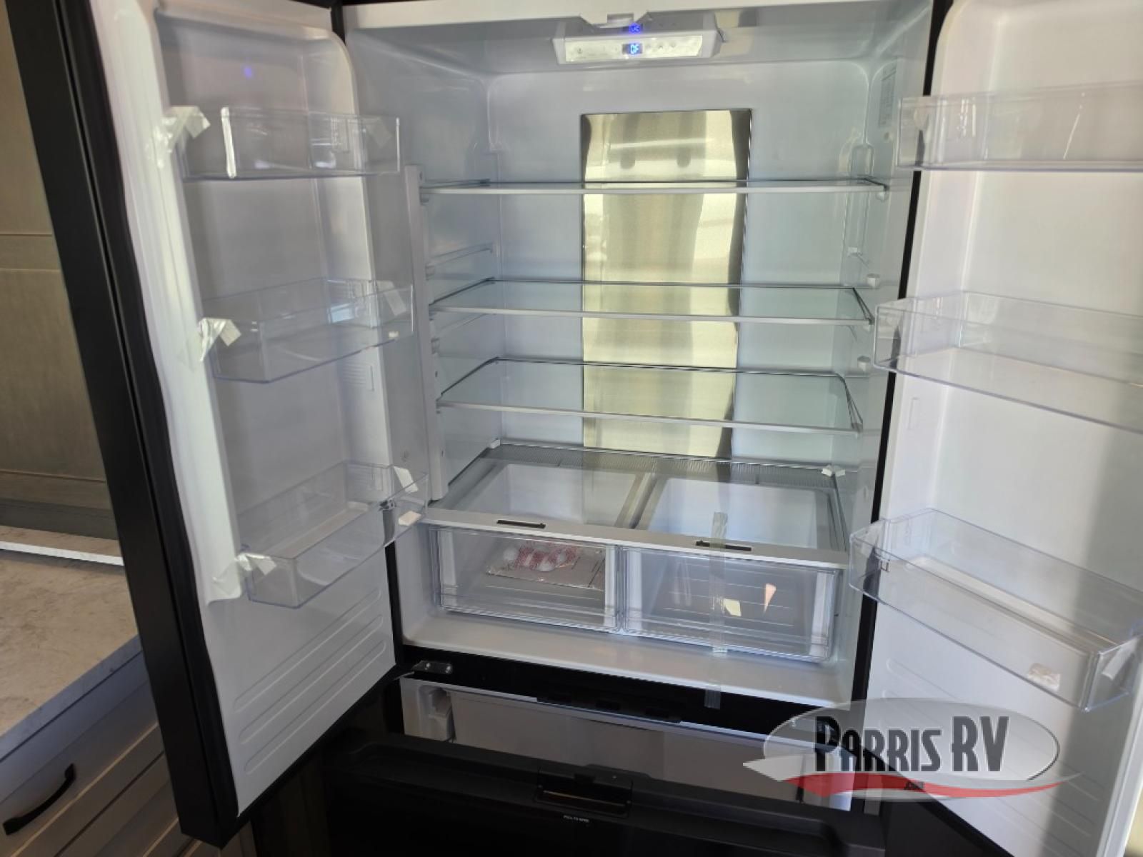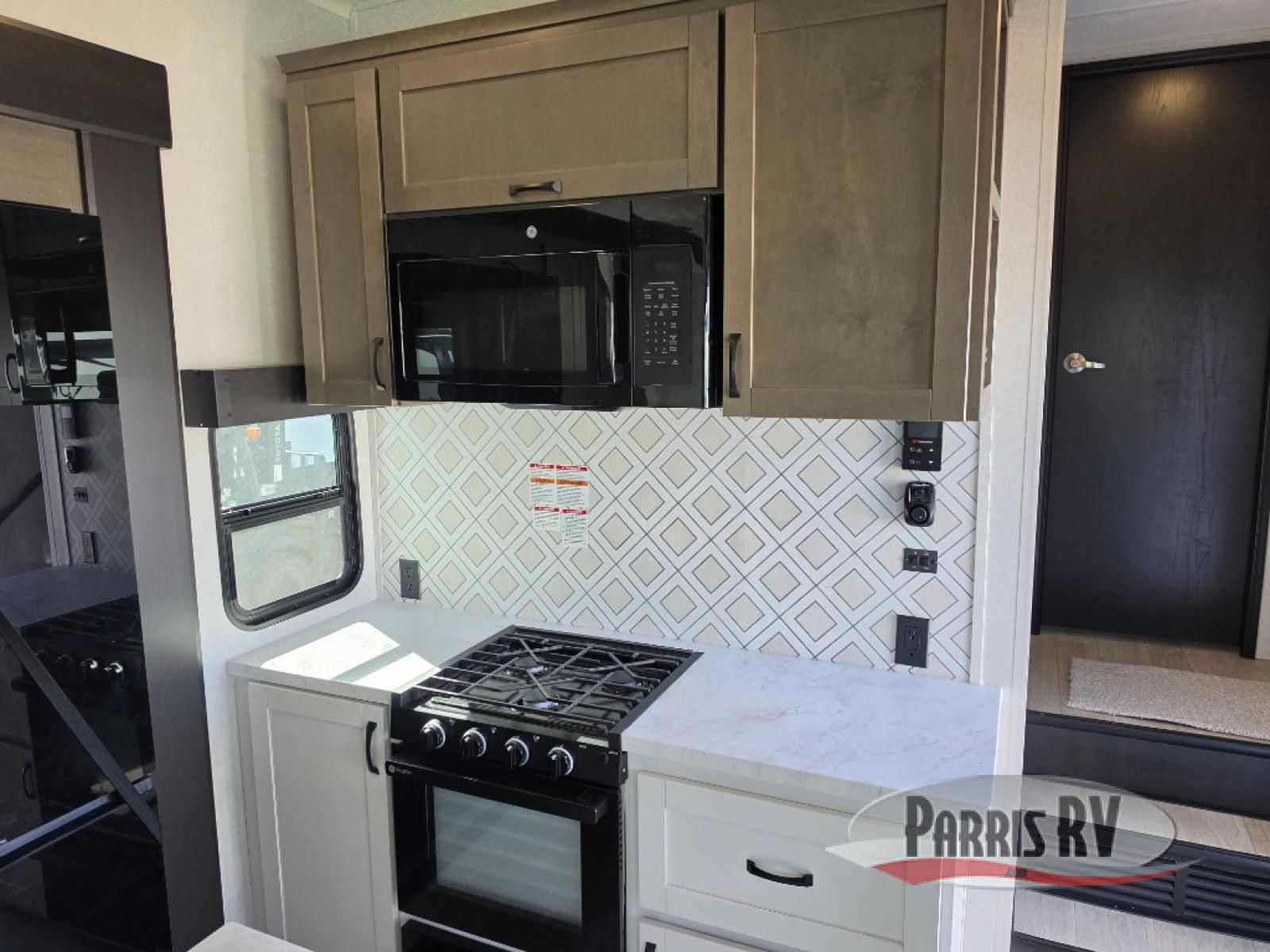 Get on the road with this toy hauler fifth wheel! The 14' garage is a playground for your toys, offering ample space for your ATV, motorcycle, or other gear. The loft above provides additional storage and an electric queen bed for a comfortable rest. The living room is a haven for relaxation, featuring an L-shaped sofa and a theater-style seat perfect for enjoying your favorite shows or movies on the TV. The kitchen is a culinary delight, equipped with a 12V refrigerator, microwave, overhead cabinets, and ample countertop space. The credenza with roll-out table is perfect for meal prep or serving, and the full bathroom provides a private space to freshen up, while the half bath option in the garage gives you more options. The cherry on top is that the front bedroom is a regal retreat, featuring a king bed, drawers, and a spacious walk-in closet.