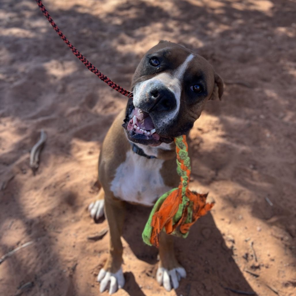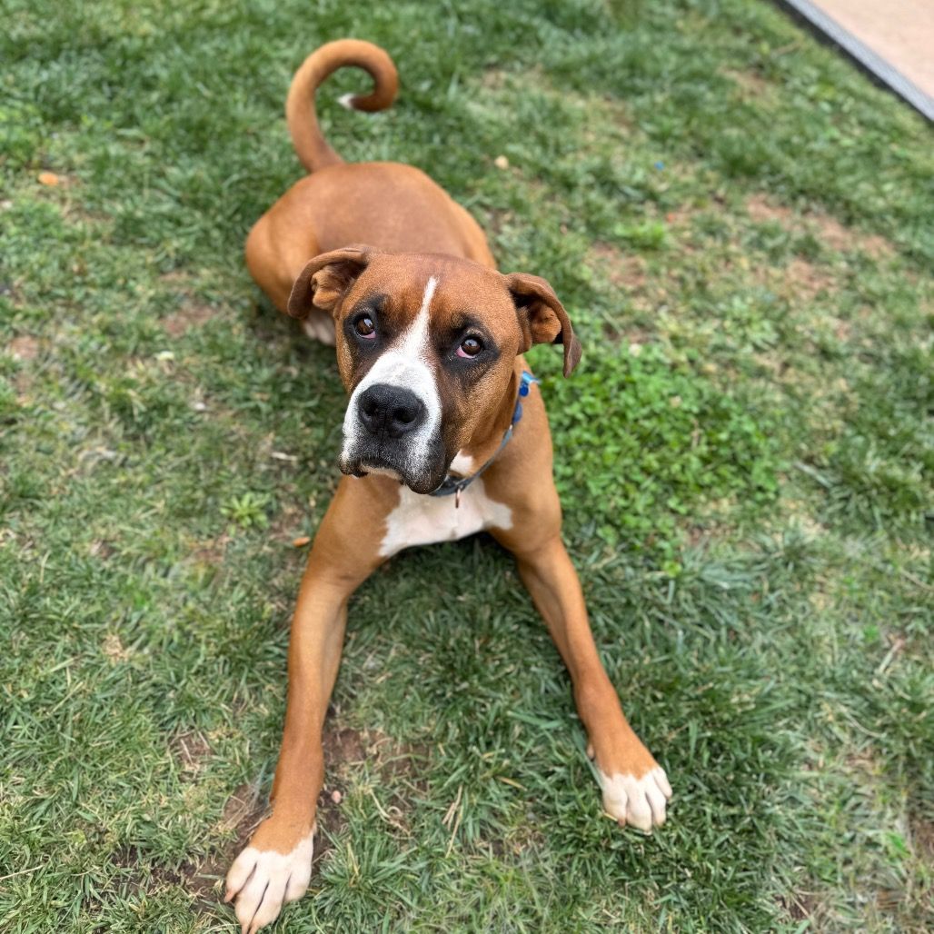 Riggins is the perfect mix of brains, heart, and hilarious charm. This big, happy guy is incredibly smart — he knows all kinds of tricks, walks beautifully on leash, and is super engaged when it comes to training. He’s crate trained, eager to please, and a total joy to work with. Riggins came to us seeking refuge from the LA fires, and through it all, his joyful spirit never wavered. Beyond his brains and resilience, Riggins is also a certified cuddle expert. He loves nothing more than laying next to (or on!) his people, soaking up all the love and giving it right back. Whether he’s out exploring the world or flopped down beside you for a nap, Riggins brings joy, loyalty, and laughs everywhere he goes. If you’re looking for a loyal best friend with a big personality and an even bigger heart, Riggins is ready to join your adventure.