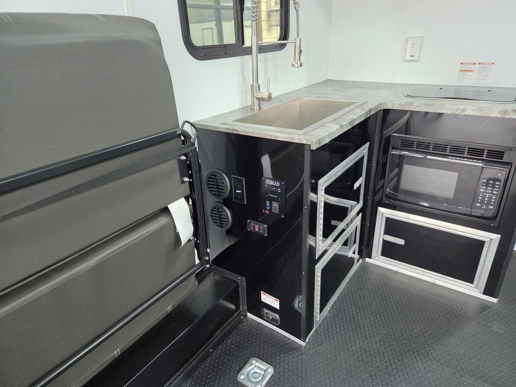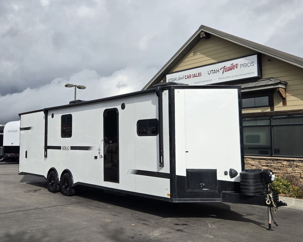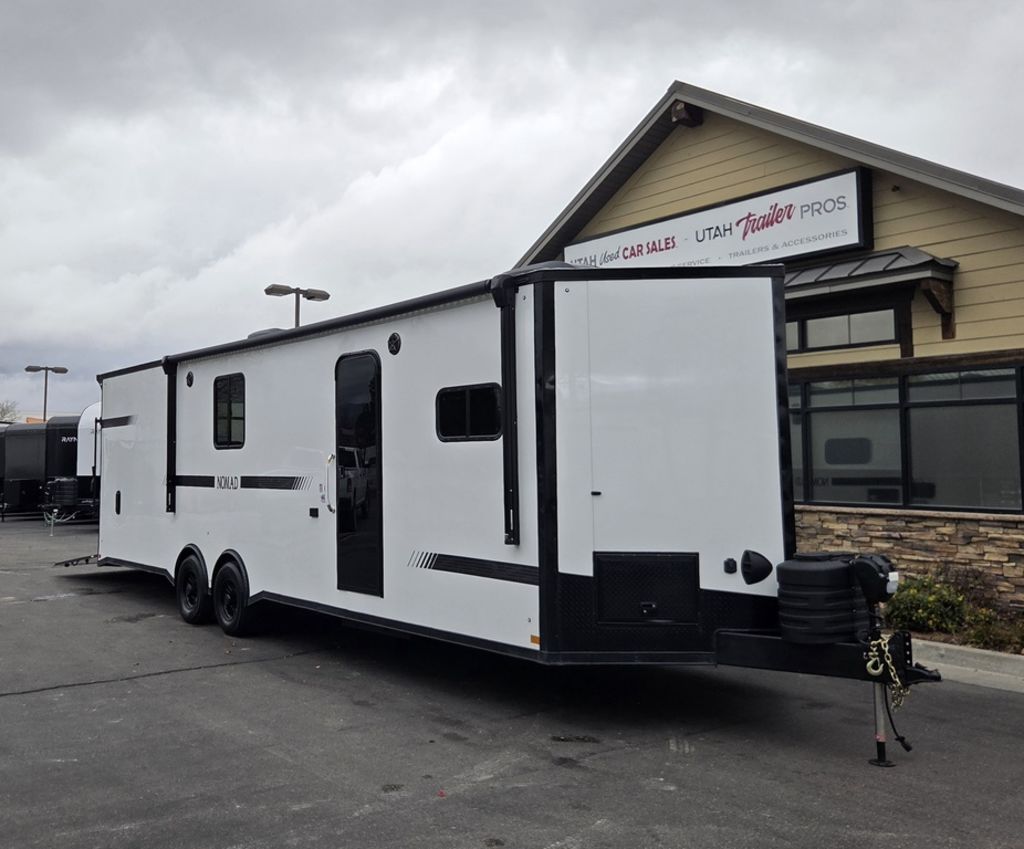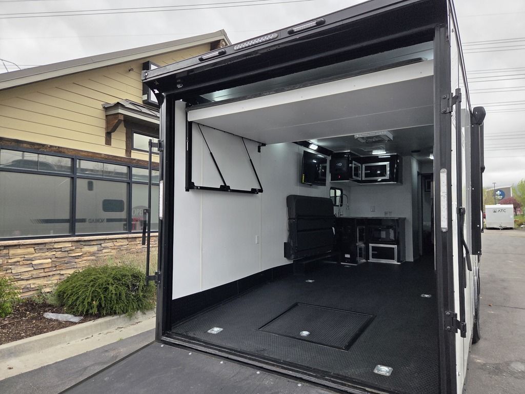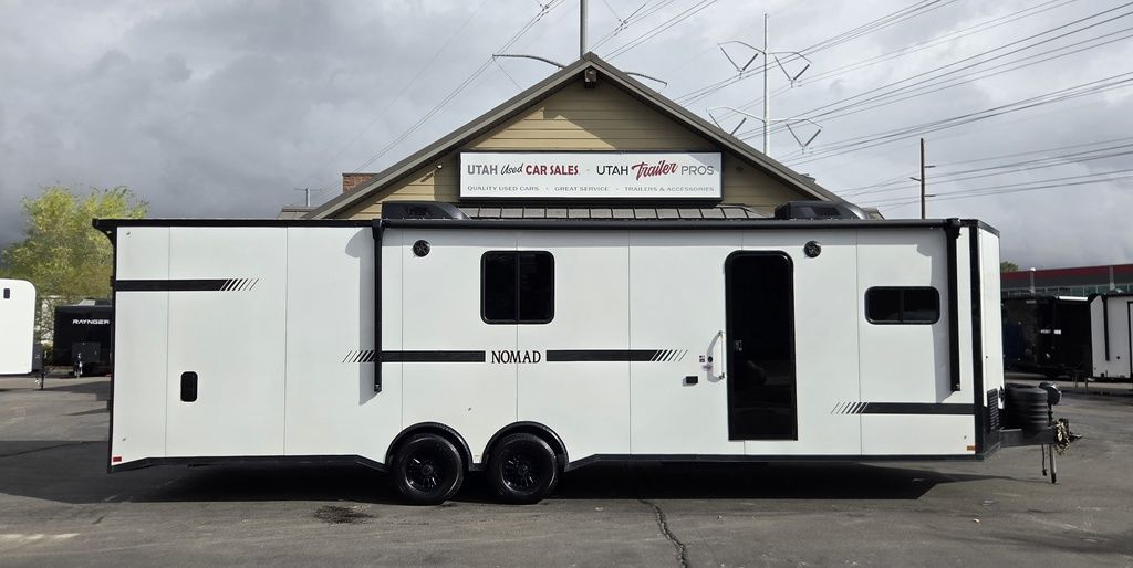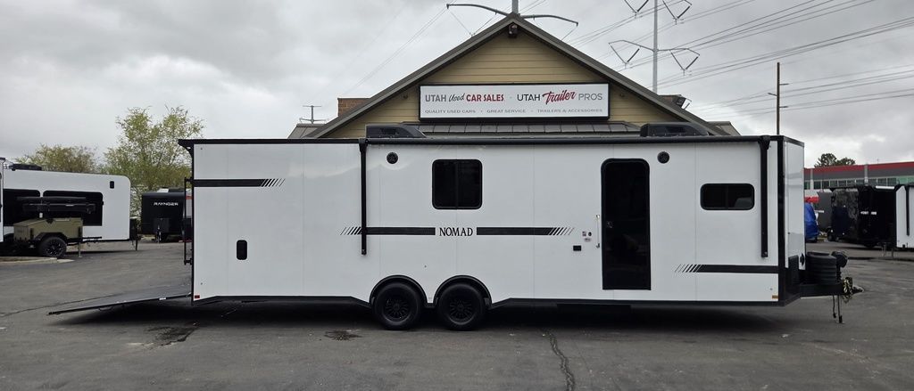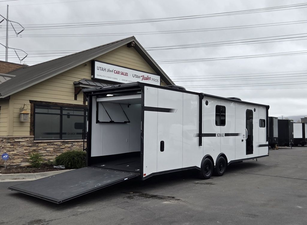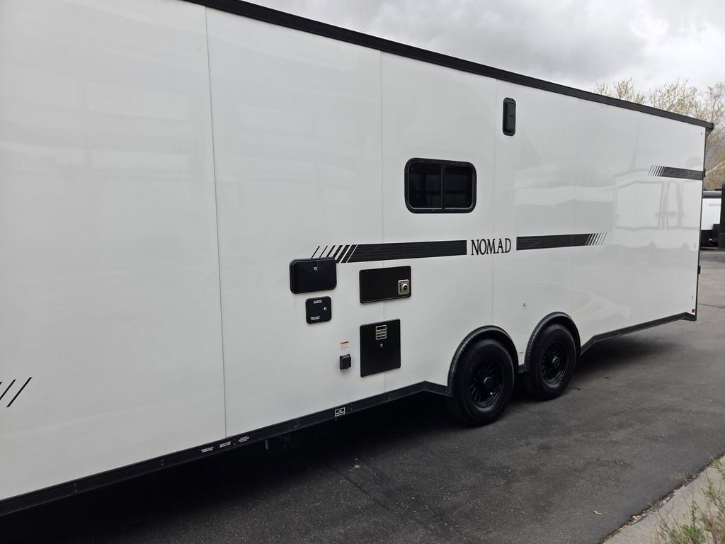 LIMITED TIME $484 A MONTH WITH ZERO DOWN WITH OUR SPECIAL LOCAL CREDIT UNION PARTNER!!! NO PRE-PAYMENT PENALTIES!!! NEW NOMAD 30QB MODEL!!! WILL FIT ANY STOCK SIDE BY SIDE UTV!!! 14,000# GVWR/7k AXLES!!! FULLY INSULATED!!! HEATING AND 2x A/C's!!! STEREO!!! 7FT-6" Interior Height/ 36" Wedge Front -Platinum Package Includes: Deluxe Stereo Package with: AM/FM/CD/DVD/USB/MP3/WMA Capable Stereo, (4) Hi Output Weatherproof Speakers (2) Interior & (2) Exterior 43" TV w/swivel bracket Rear Hide-A-Screen Solar Port ****WELD**** 7FT-6" Interior Height/ 36" Wedge Front 2x8 Tube Steel Main Rails 16" O/C Floor Steel Tube Crossmembers 16" O/C Steel Tube Wall Studs 24" O/C Tube Steel Roof Bows 18" Extended Triple Tube A-Frame Lippert Torsion Axles w/32 Deg Down Start Angle 40" Spread Axles 7000# Axles w/ST235/80R16 Tires on TA5 Electric Brakes 2-5/16 Adjustable A-Frame Coupler 5000# Electric A-Frame Tongue Jack 4000# Rear Cableless Ramp Door w/Steel Flap (2) Roof Vent in Living/Garage Area (1) Prep & Wired for A/C - Main A/C only 12V Roof Vent in Bathroom Painted Tongue/Rear Sill Black (1) Pair Rear Stab Jacks Rear Flare w/(2) Loading Lights w/Switch 72" Beavertail ****PLUMBING**** 53 Gallon Fresh Water Tank (2) 43 Gallon Waste Holding Tank Sewer Hose Storage Compartment Double 20# LP Bottle w/Cover on A-Frame 6 Gallon DSI LP Gas/Electric Water Heater 12V Water Pump City/Gravity Water Fill Hook Up Outside Shower and RV Toilet Bathroom Mirror & Robe Hooks 24x36 Shower w/Shower Curtain & Surround Tank and Battery Monitor Panel ****ELECTRICAL**** 7-Way Electrical Plug LED Strip Taillights/Marker Lights 12V Deluxe LED Lighting 45 Amp RV Power Center w/12V Converter 30 Amp Motor base Plug Detachable Twist lock Power Cord Battery Box Only (Battery not included) (2) 110V GFI Receptacle in Kitchen Area 110V Receptacle in Garage Area 110V Exterior GFI Receptacle Dual USB Ports in Kitchen 6 Cubic Foot Refrigerator (RH) Microwave Oven Below Stove Top 35K BTU Furnace TV Prep Package - Includes: Coax Cable Outlets - Interior & Exterior Omnidirectional TV Antenna UHF/VHF (3) 12V 40" LED Cove Lights in Living/Garage Area Smoke, CO, & LP Detector & Fire Extinguisher *****INTERIOR*****3/4" Drymax Floor & 3/8" White Vinyl Walls Polystyrene Foam Insulation - Walls & Ceiling ATP Rubber Floor Covering White Vinyl Ceiling Liner w/Black Cove Molding Black Kitchen L-Base Cabinet w/Laminate C-Top Black Kitchen L-Overhead Cabinet (4) 5000# Recessed D-Rings Outside Storage (1) Pair Black Aluminum Directional Sidewall Vents ****ROOF**** Seamless Aluminum Flat Top Roof LED Marker Lights Rear Flare w/(2) Loading Lights *****METAL****.080 Screwless Armor Shield Composite Skin STD Colors: Crystal White, Black, Matte Black Windstar Silver, Victory Red, Pewter, Charcoal 3" Heavy Duty Flat Top Trim 3" Flat Bottom Trim & 6" Barrier Tape All Black Exterior Trim & ATP Fenders 24" Tall Slanted Diamond Plate Stone guard 24" Tall Diamond Plate along sides at bottom (1) Pair Black Aluminum Directional Sidewall Vents*****DOORS & WINDOWS****26W x 78H Radius Corner Deluxe RV Door w/Window & Screen Aluminum Door Holdback Double Fold Out RV Step 4000# Rear Cableless Ramp Door w/Steel Flap All Black Zinc Coated Door Hardware 24Wx72H Door w/Barlock in Front Storage 30x15 Window in Kitchen Area 30x30 Window in Living/Garage Area 30x22 Egress Window in Bedroom Area 30x15 Window in Bedroom Area Window Coverings - In Garage Area (Only) ****FINAL***** LED Strip Taillights/Marker Lights 12V Deluxe LED Lightning Black Aluminum Wheels w/Radial Tires & Black Center Caps Recessed Spare Tire Compartment Limited 3 Year Structural Warranty ***Platinum Package: PKG Includes: Deluxe Stereo Package with:AM/FM/CD/DVD/USB/MP3/WMA Capable T2104361
