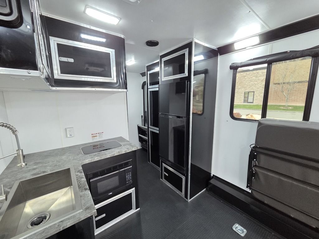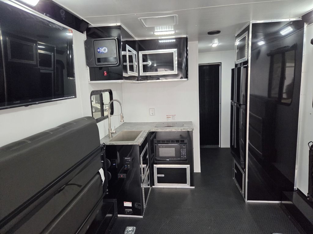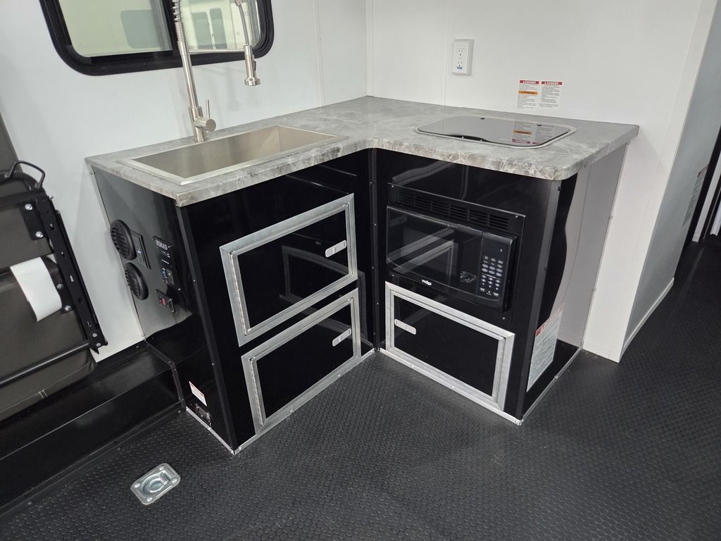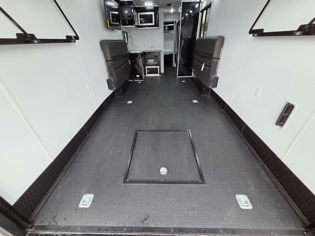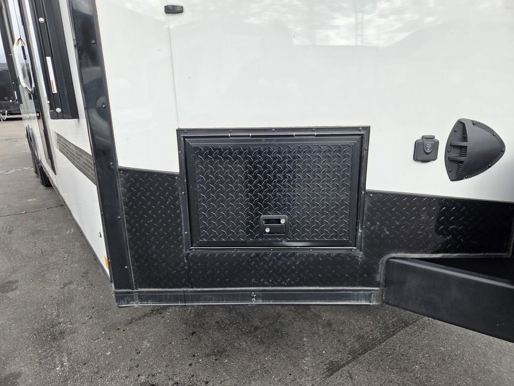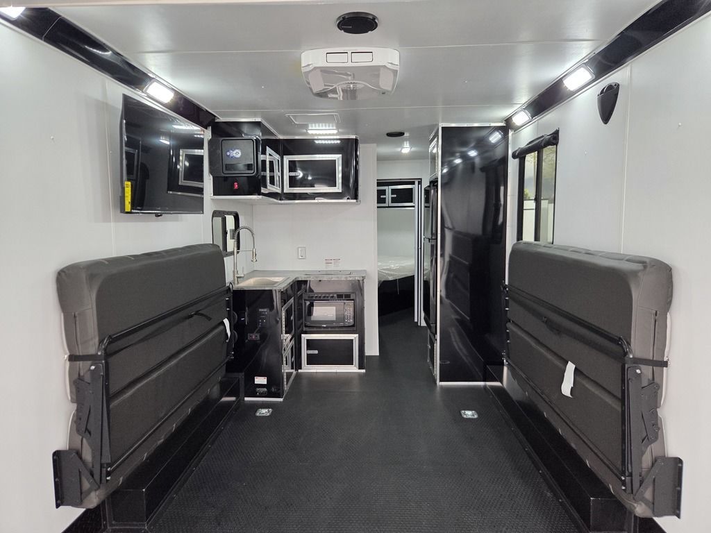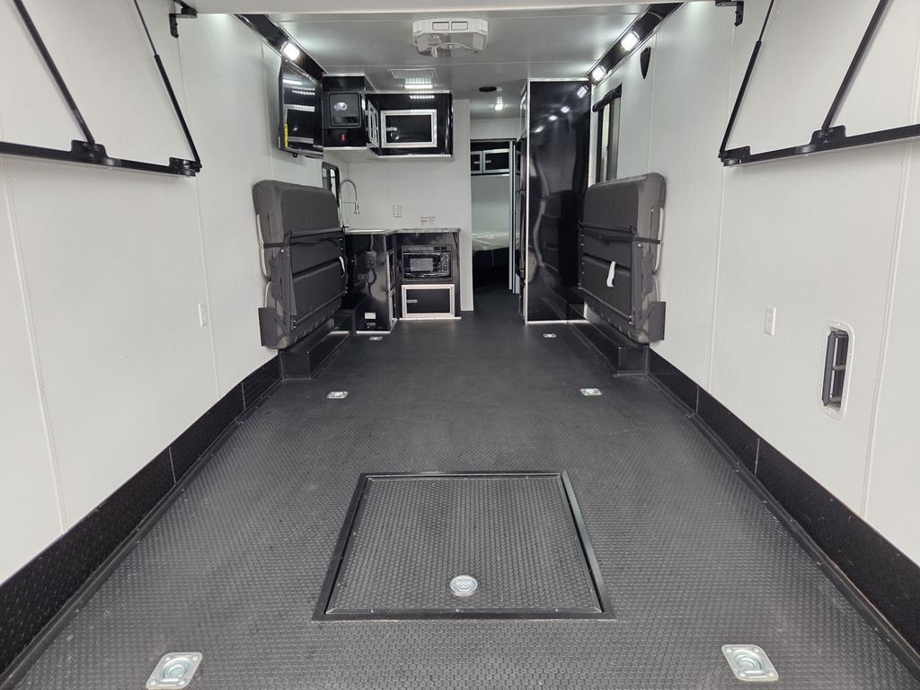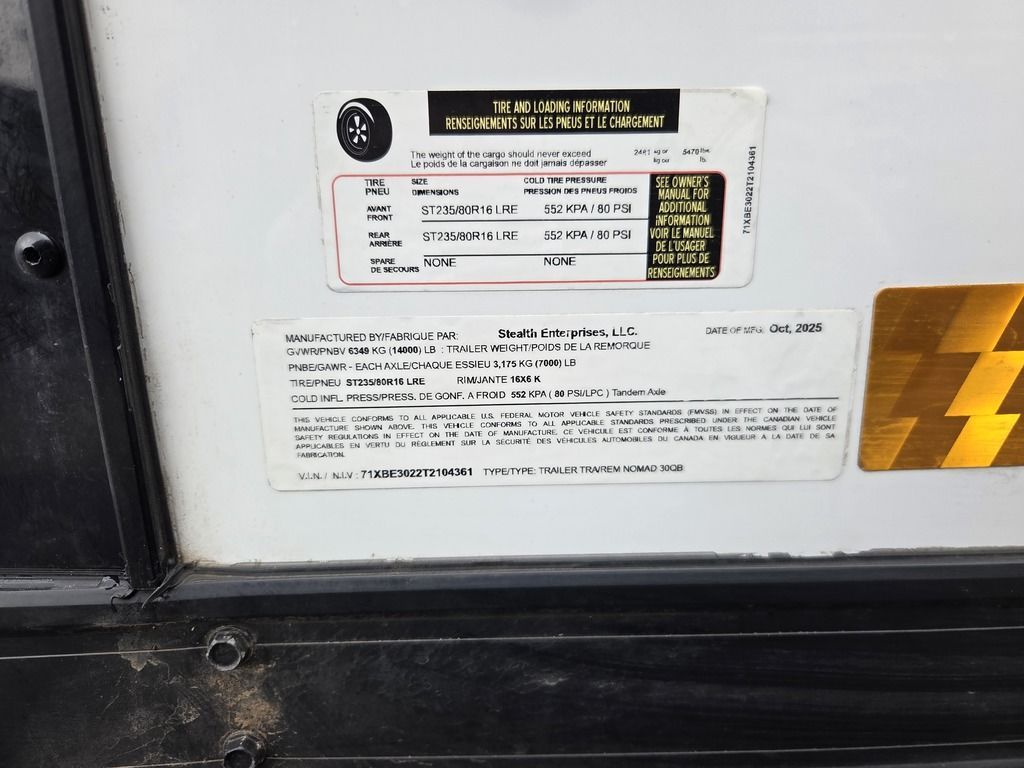 LIMITED TIME $484 A MONTH WITH ZERO DOWN WITH OUR SPECIAL LOCAL CREDIT UNION PARTNER!!! NO PRE-PAYMENT PENALTIES!!! NEW NOMAD 30QB MODEL!!! WILL FIT ANY STOCK SIDE BY SIDE UTV!!! 14,000# GVWR/7k AXLES!!! FULLY INSULATED!!! HEATING AND 2x A/C's!!! STEREO!!! 7FT-6" Interior Height/ 36" Wedge Front -Platinum Package Includes: Deluxe Stereo Package with: AM/FM/CD/DVD/USB/MP3/WMA Capable Stereo, (4) Hi Output Weatherproof Speakers (2) Interior & (2) Exterior 43" TV w/swivel bracket Rear Hide-A-Screen Solar Port ****WELD**** 7FT-6" Interior Height/ 36" Wedge Front 2x8 Tube Steel Main Rails 16" O/C Floor Steel Tube Crossmembers 16" O/C Steel Tube Wall Studs 24" O/C Tube Steel Roof Bows 18" Extended Triple Tube A-Frame Lippert Torsion Axles w/32 Deg Down Start Angle 40" Spread Axles 7000# Axles w/ST235/80R16 Tires on TA5 Electric Brakes 2-5/16 Adjustable A-Frame Coupler 5000# Electric A-Frame Tongue Jack 4000# Rear Cableless Ramp Door w/Steel Flap (2) Roof Vent in Living/Garage Area (1) Prep & Wired for A/C - Main A/C only 12V Roof Vent in Bathroom Painted Tongue/Rear Sill Black (1) Pair Rear Stab Jacks Rear Flare w/(2) Loading Lights w/Switch 72" Beavertail ****PLUMBING**** 53 Gallon Fresh Water Tank (2) 43 Gallon Waste Holding Tank Sewer Hose Storage Compartment Double 20# LP Bottle w/Cover on A-Frame 6 Gallon DSI LP Gas/Electric Water Heater 12V Water Pump City/Gravity Water Fill Hook Up Outside Shower and RV Toilet Bathroom Mirror & Robe Hooks 24x36 Shower w/Shower Curtain & Surround Tank and Battery Monitor Panel ****ELECTRICAL**** 7-Way Electrical Plug LED Strip Taillights/Marker Lights 12V Deluxe LED Lighting 45 Amp RV Power Center w/12V Converter 30 Amp Motor base Plug Detachable Twist lock Power Cord Battery Box Only (Battery not included) (2) 110V GFI Receptacle in Kitchen Area 110V Receptacle in Garage Area 110V Exterior GFI Receptacle Dual USB Ports in Kitchen 6 Cubic Foot Refrigerator (RH) Microwave Oven Below Stove Top 35K BTU Furnace TV Prep Package - Includes: Coax Cable Outlets - Interior & Exterior Omnidirectional TV Antenna UHF/VHF (3) 12V 40" LED Cove Lights in Living/Garage Area Smoke, CO, & LP Detector & Fire Extinguisher *****INTERIOR*****3/4" Drymax Floor & 3/8" White Vinyl Walls Polystyrene Foam Insulation - Walls & Ceiling ATP Rubber Floor Covering White Vinyl Ceiling Liner w/Black Cove Molding Black Kitchen L-Base Cabinet w/Laminate C-Top Black Kitchen L-Overhead Cabinet (4) 5000# Recessed D-Rings Outside Storage (1) Pair Black Aluminum Directional Sidewall Vents ****ROOF**** Seamless Aluminum Flat Top Roof LED Marker Lights Rear Flare w/(2) Loading Lights *****METAL****.080 Screwless Armor Shield Composite Skin STD Colors: Crystal White, Black, Matte Black Windstar Silver, Victory Red, Pewter, Charcoal 3" Heavy Duty Flat Top Trim 3" Flat Bottom Trim & 6" Barrier Tape All Black Exterior Trim & ATP Fenders 24" Tall Slanted Diamond Plate Stone guard 24" Tall Diamond Plate along sides at bottom (1) Pair Black Aluminum Directional Sidewall Vents*****DOORS & WINDOWS****26W x 78H Radius Corner Deluxe RV Door w/Window & Screen Aluminum Door Holdback Double Fold Out RV Step 4000# Rear Cableless Ramp Door w/Steel Flap All Black Zinc Coated Door Hardware 24Wx72H Door w/Barlock in Front Storage 30x15 Window in Kitchen Area 30x30 Window in Living/Garage Area 30x22 Egress Window in Bedroom Area 30x15 Window in Bedroom Area Window Coverings - In Garage Area (Only) ****FINAL***** LED Strip Taillights/Marker Lights 12V Deluxe LED Lightning Black Aluminum Wheels w/Radial Tires & Black Center Caps Recessed Spare Tire Compartment Limited 3 Year Structural Warranty ***Platinum Package: PKG Includes: Deluxe Stereo Package with:AM/FM/CD/DVD/USB/MP3/WMA Capable T2104361