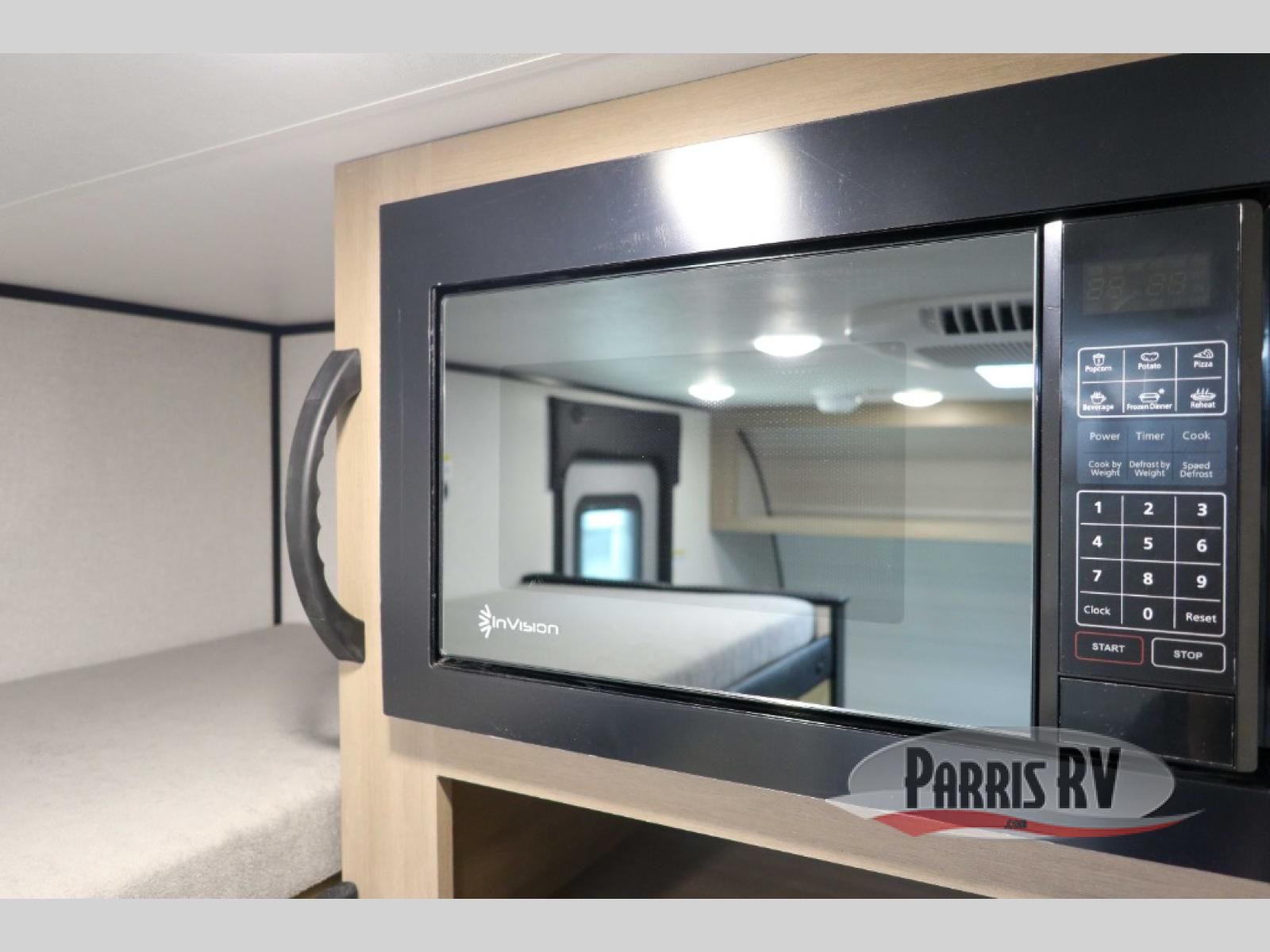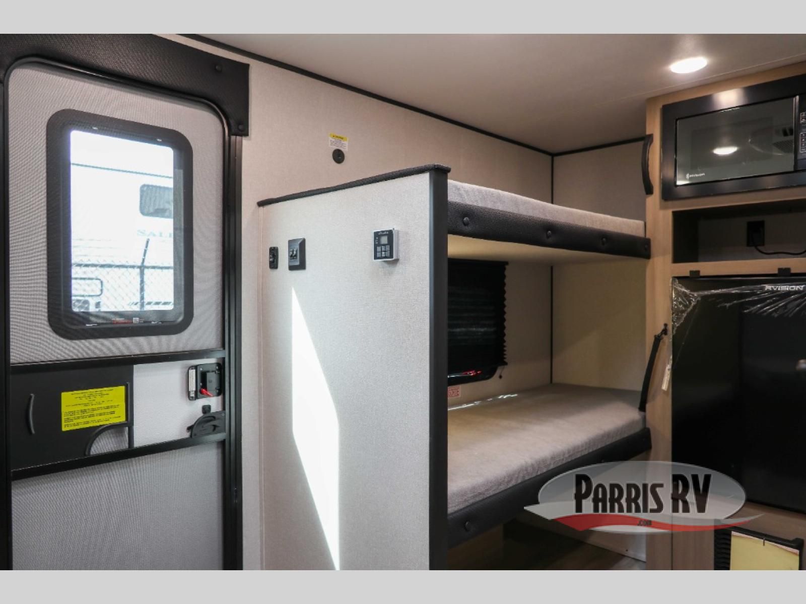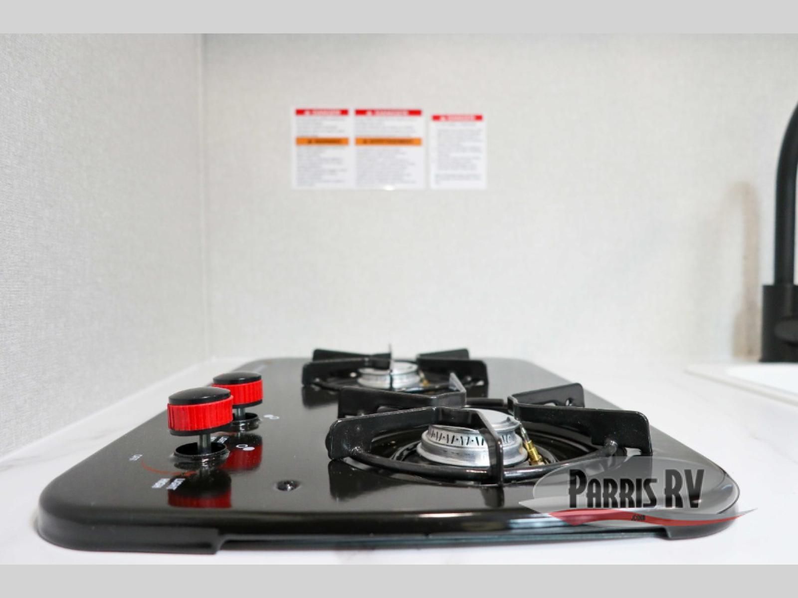 This lightweight travel trailer is easy to tow and easy to love! Once you arrive at your campsite and unload your things, you can make lunch on the two-burner cooktop or in the microwave oven, and there is a 12V refrigerator to keep cold drinks stocked. A private bath includes a shower and toilet, which will allow you to freshen up each day, and the bunk beds provide compact sleeping space for guests! You can take the front 54" x 74" full-size bed with a wardrobe/nightstand at the foot of the bed to keep your things tidy.