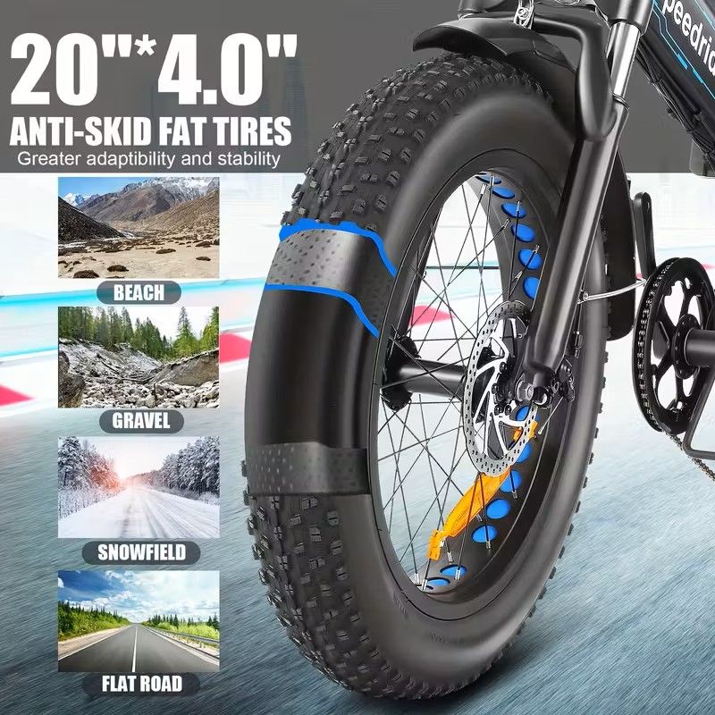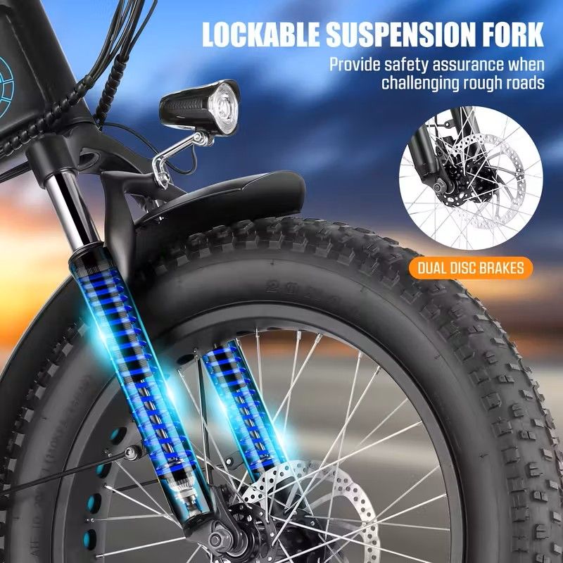 Powerful 500W (749W Max) 20" Fat Tire Folding Electric Bike for Adults | Removable 48V 10.4Ah Battery, Up to 50 Miles Range, Suspension Fork, 7-Speed Gear Commuter Ebike, Blue Dirt Electric Bike.
